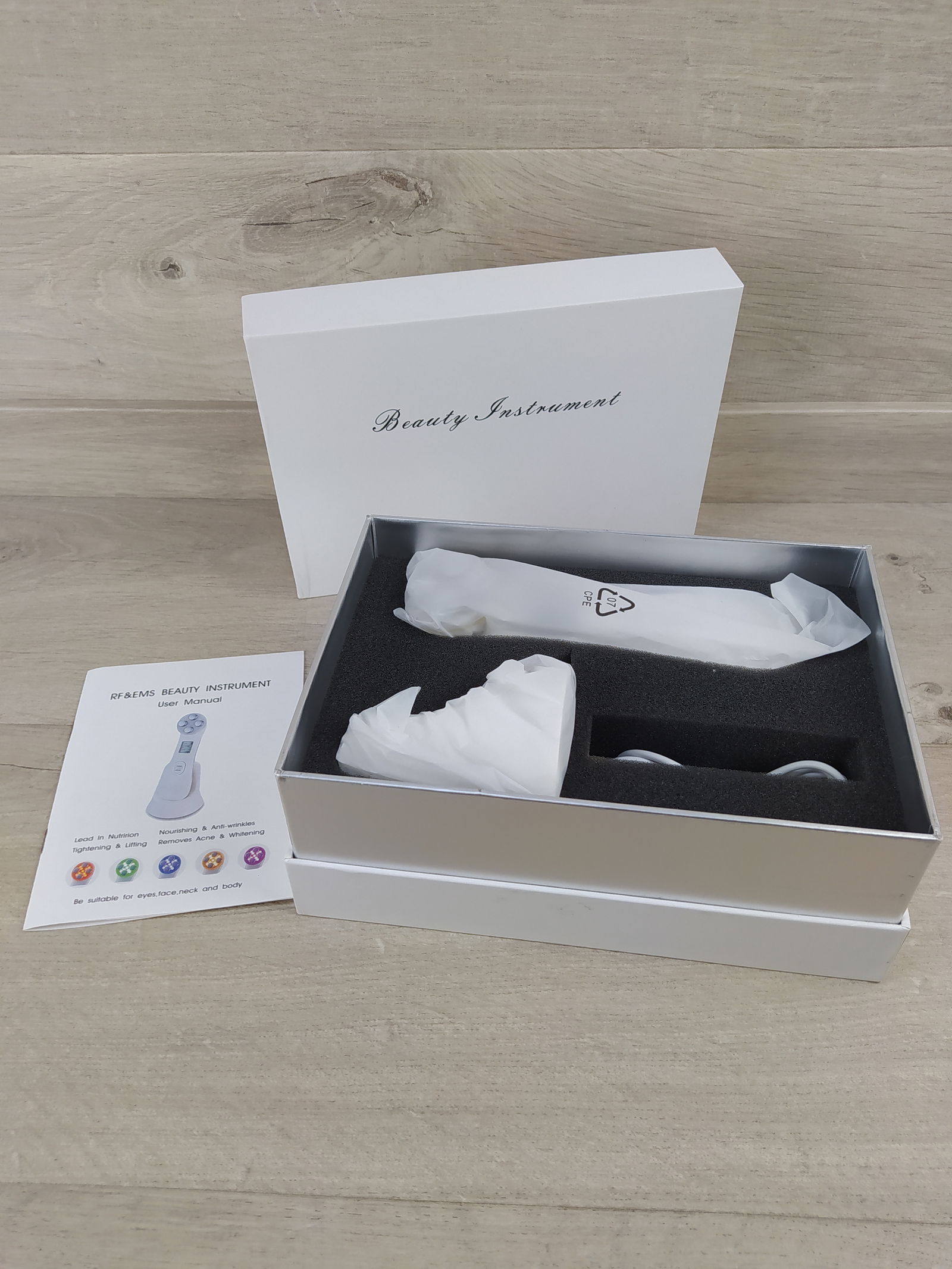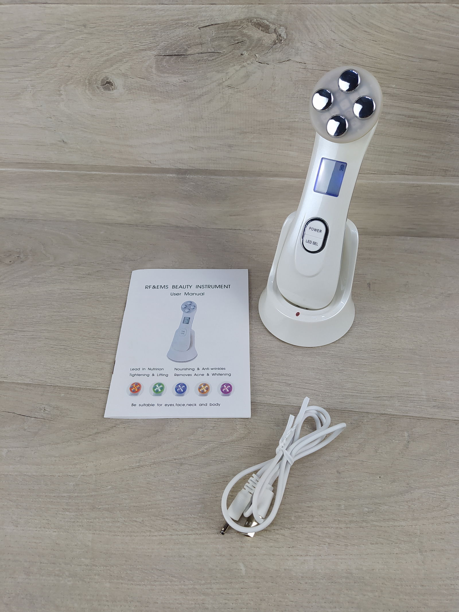 Wielofunkcyjne urządzenie do pielęgnacji twarzy łączy w sobie ultradźwięki, jony, protony, światło LED oraz biomikroprądy, tworząc kompleksowy system do domowej pielęgnacji skóry. To nowoczesna technologia, która wspiera wchłanianie składników aktywnych, poprawia kondycję skóry i pomaga uzyskać zdrowszy, gładszy wygląd.