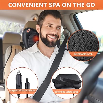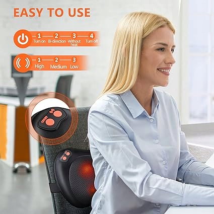 - Masaż głębokich tkanek: 4 głęboko ugniatające się węzły masażu pleców pomagają rozluźnić sztywność mięśni. Urządzenie do masażu pleców z ciepłem pomaga rozluźnić kark i rozluźnia napięcie mięśni. Zapewnia przyjemne doznania masażu. Minimalna odległość między dwiema głowicami masującymi: 1,5 cala