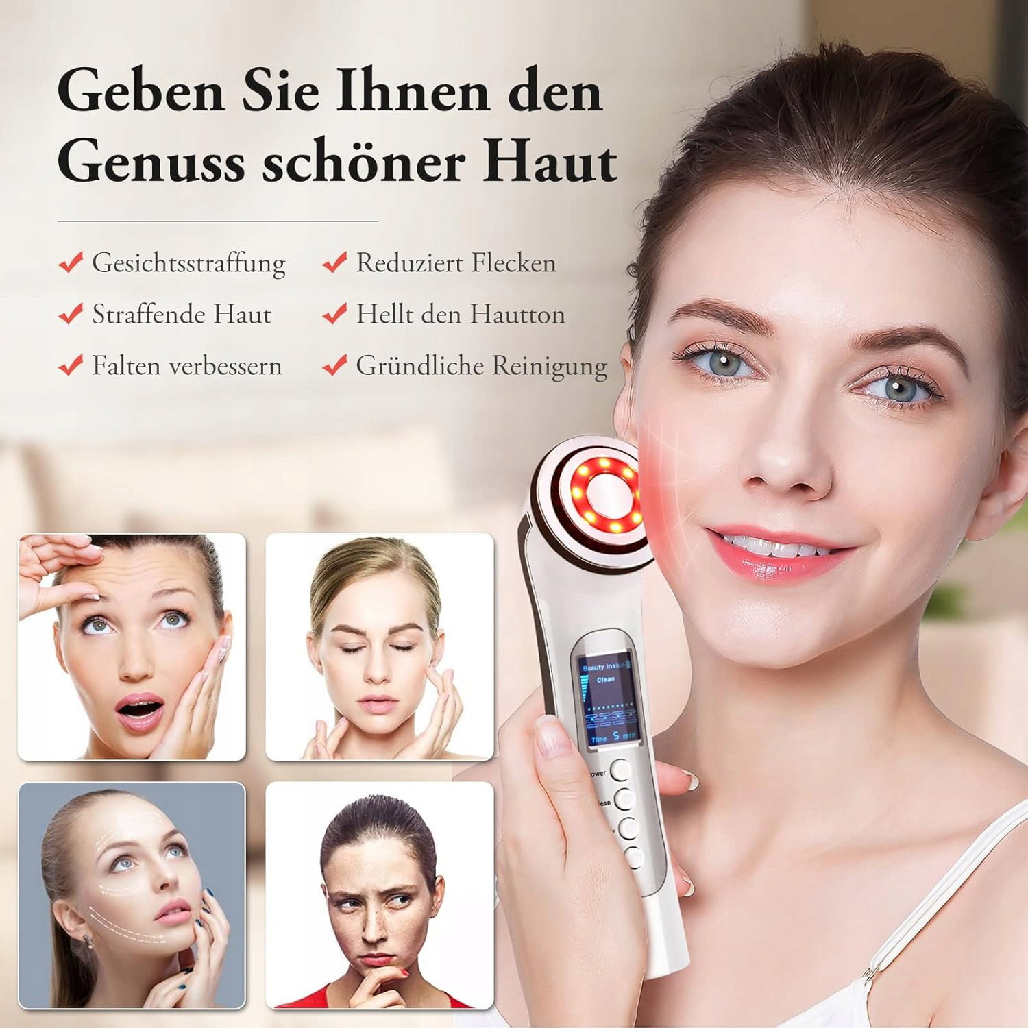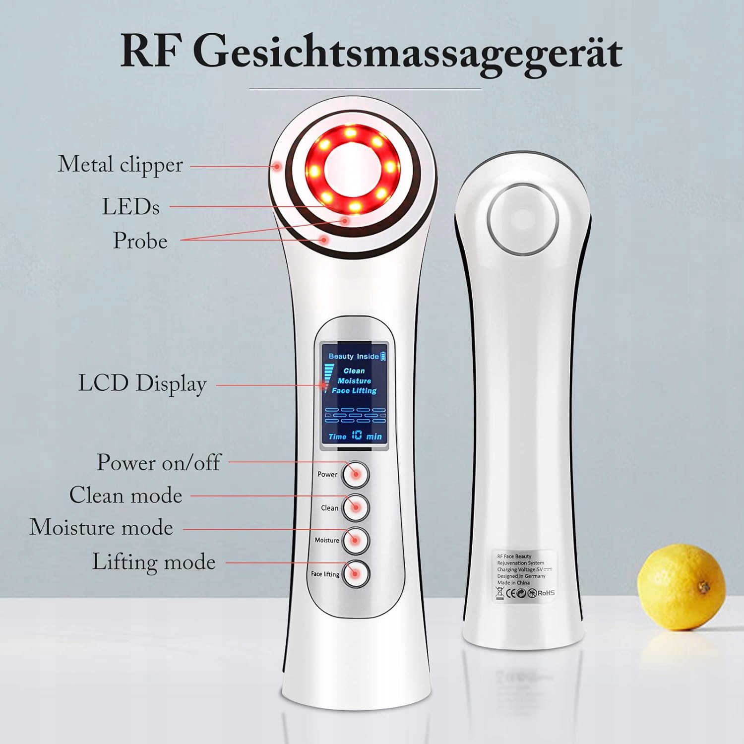 Bogate funkcje: urządzenie CARER BEAUTY Facelifting integruje pięć funkcji w jednym, "częstotliwość radiowa (RF), EMS, światło LED, wibracje i jony dodatnie. Skóra staje się gładsza i jędrniejsza