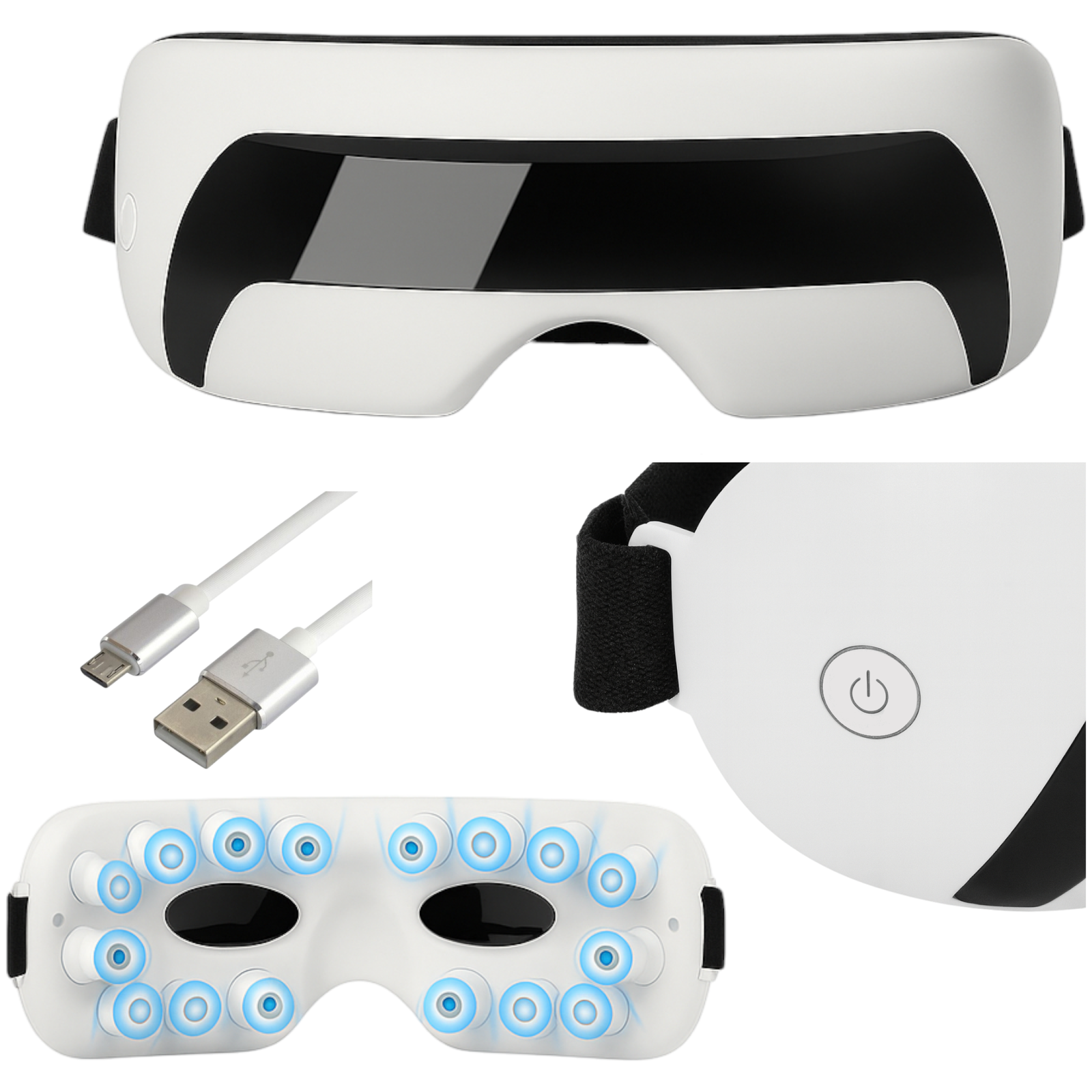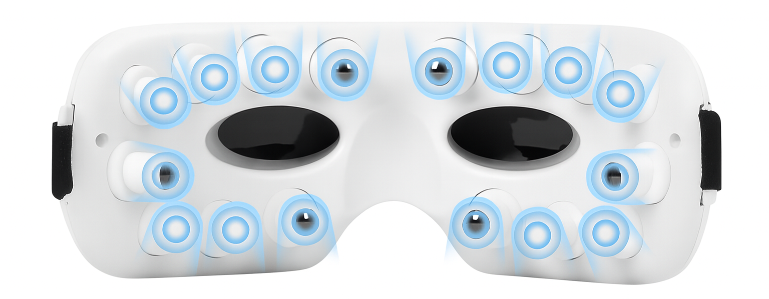 16 Silikonowych wypustek masujących okolice oczu, poprawiają krążenie i rozluźniają napięcie mięśni.