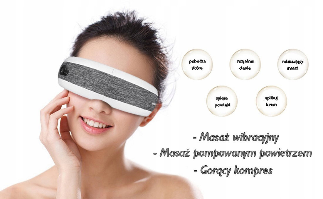 Rozpieszczaj swoje zmysły i poczuj błogi relaks dzięki naszemu innowacyjnemu masażerowi okolic oczu i skroni.