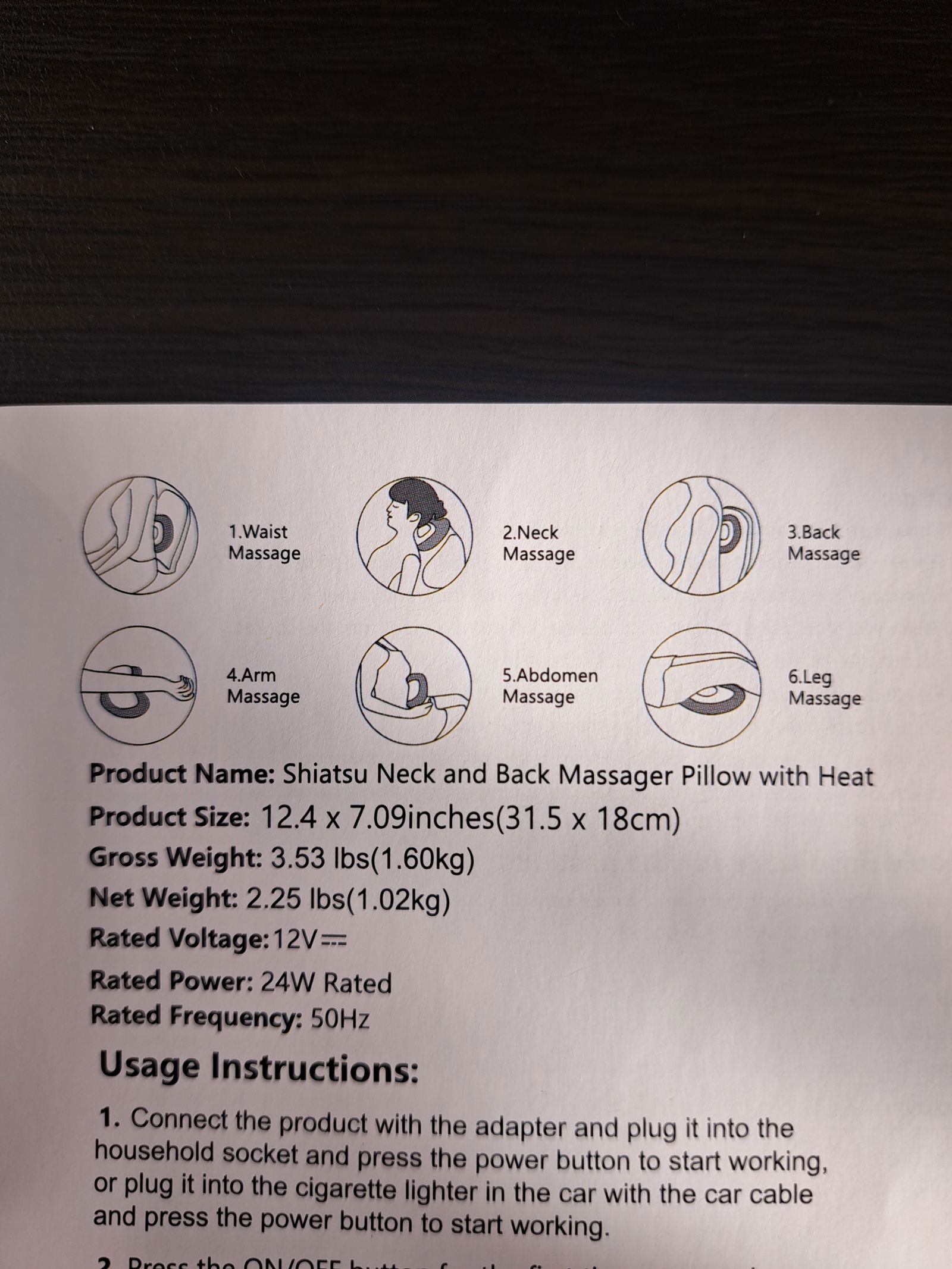 1 x Poduszka masująca Shiatsu do szyi i pleców z funkcją podgrzewania