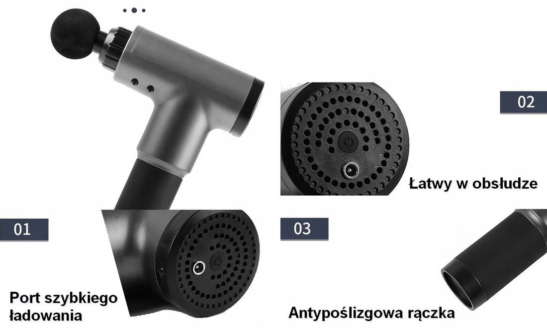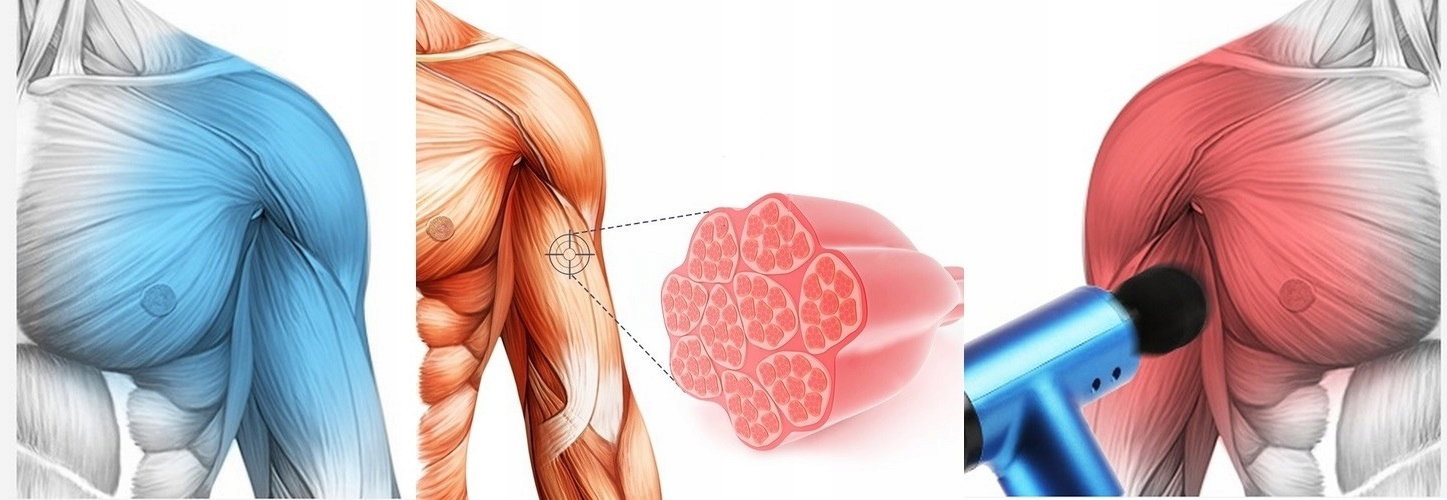 - Nasz Pistolet GUN PRO oferuje intensywny masaż mięśniowy, który pomaga w redukcji bólu i napięcia mięśniowego. Dzięki głębokim wibracjom poprawia się również krążenie krwi, co wspomaga regenerację mięśni po treningu lub ciężkim dniu pracy.