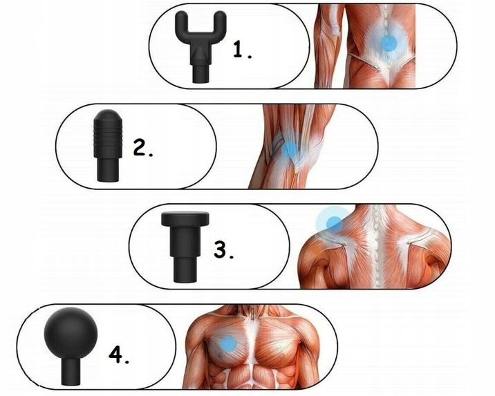 Nasz masażer ręczny wyposażony jest w 4 różne końcówki, które możesz dopasować do obszaru ciała, w którym występuje ból. Dodatkowo 6 trybów mocy pozwoli dopasować intensywność masażu do bólu jaki odczuwamy. Połączenie to daje znakomite efekty.