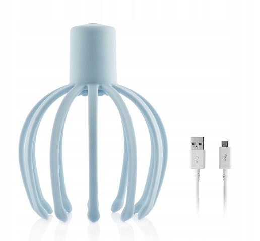 Bezprzewodowy elektryczny masażer głowy, który dzięki wibracyjnemu masażowi 360º doskonale relaksuje i zapewnia dobre samopoczucie. Posiada 3 tryby masażu (przerywany, nieustanny wolny, nieustanny szybki), które można wybrać w zależności od potrzeb i preferencji chwili. Prezentowany masażer jest niezwykle skuteczny, ergonomiczny i elastyczny. Całkowicie dopasowuje się do kształtu głowy. Jest bardzo łatwy w obsłudze, gdyż uruchamianie wszystkich funkcji i obsługa odbywają się za pomocą jednego przycisku. Dodatkową zaletą zwiększającą komfort stosowania jest brak konieczności użycia rąk. Wszechstronna, lekka i przenośna konstrukcja masażera umożliwia wysoce relaksacyjny masaż głowy w dowolnej chwili (czytając, pracując, oglądając telewizję, itp.) i miejscu (na kanapie, w łóżku, w łazience, itp.). Dzięki zastosowaniu wysokiej jakości materiałów, masażer jest odporny i trwały, a ponadto niezwykle cichy i bezpieczny, gdyż nie plącze włosów i ich nie uszkadza. Do zestawu dołączono kabel USB do micro USB.