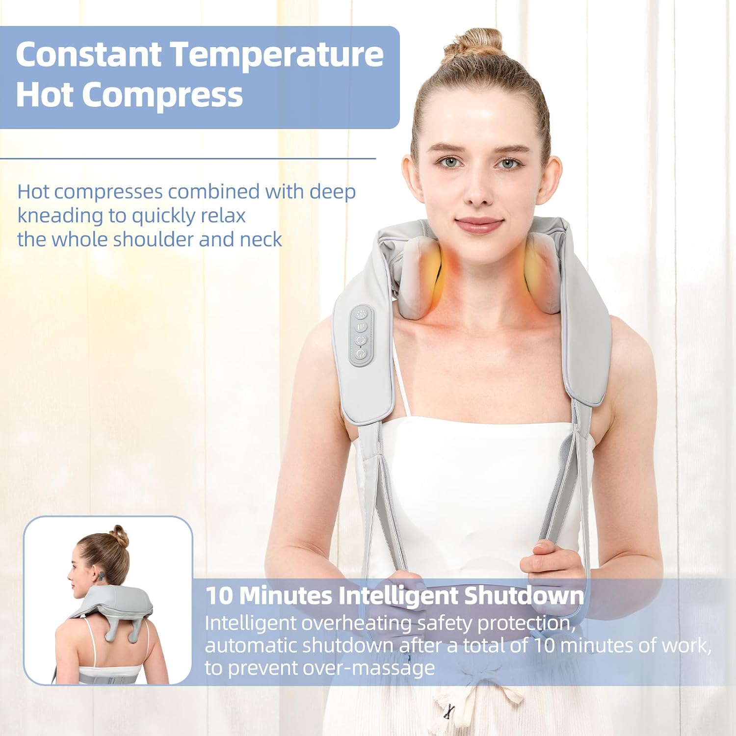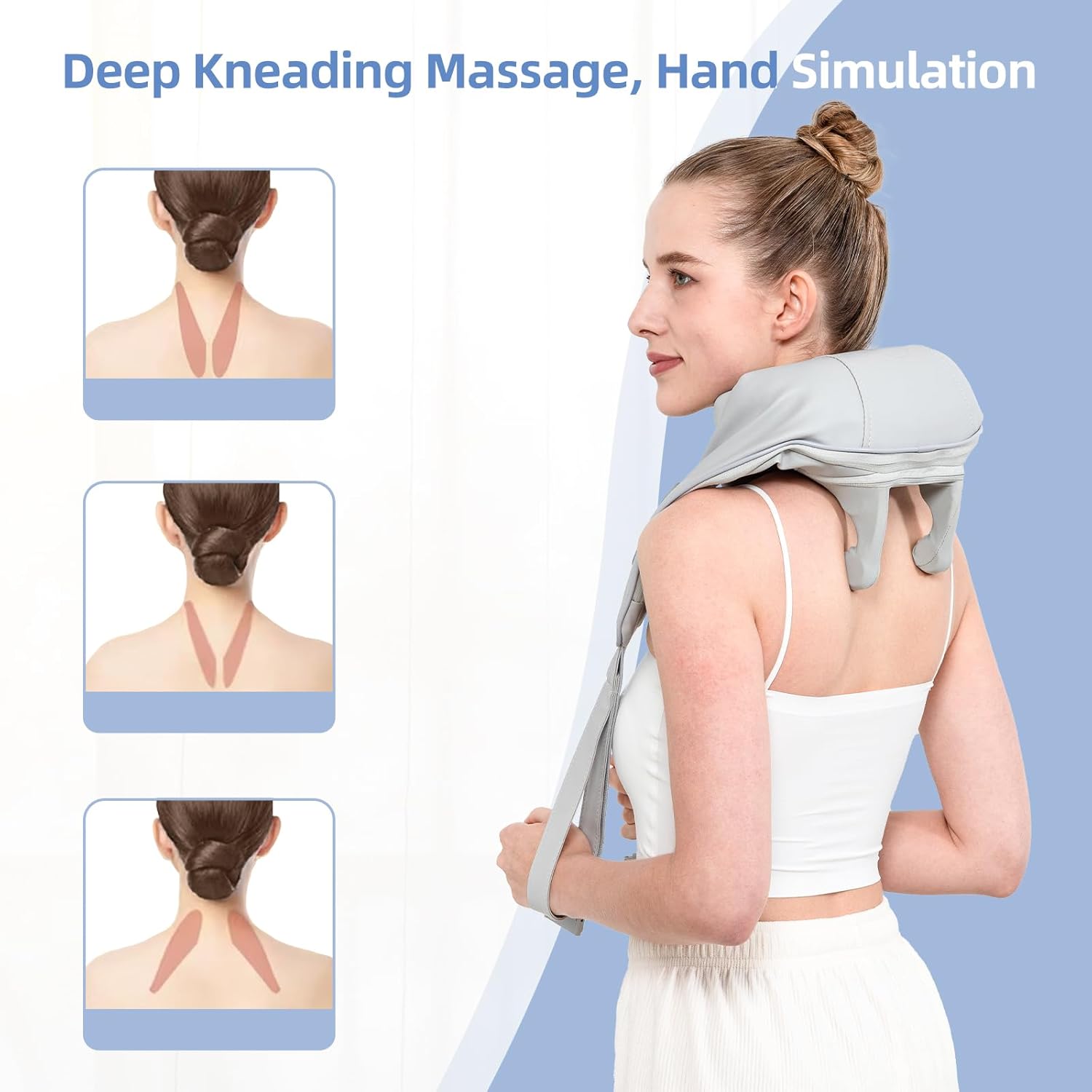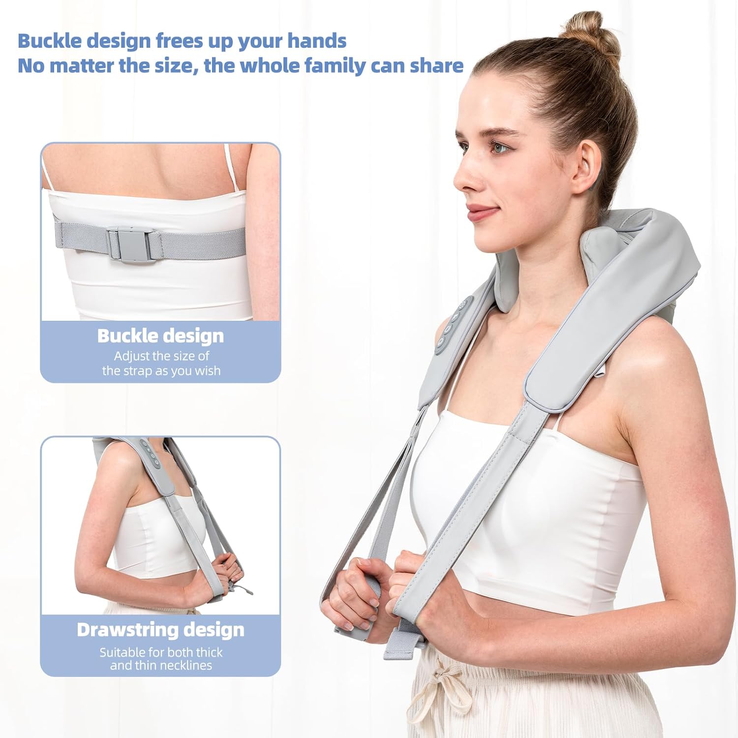 - Głęboki masaż: silikonowa głowica do masażu owinięta przyjazną dla skóry i oddychającą tkaniną imituje ściśnięty masaż ludzkich rąk; Łącząc 3 tryby masażu; 3 dopasowane mocne strony masażu; głębokie ugniatanie mięśnia czworobocznego; bardziej ukierunkowane łagodzenie dyskomfortu ramion i szyi oraz rozluźnienie mięśni. Ponadto ma również dobry efekt masażu pleców, talii i nóg