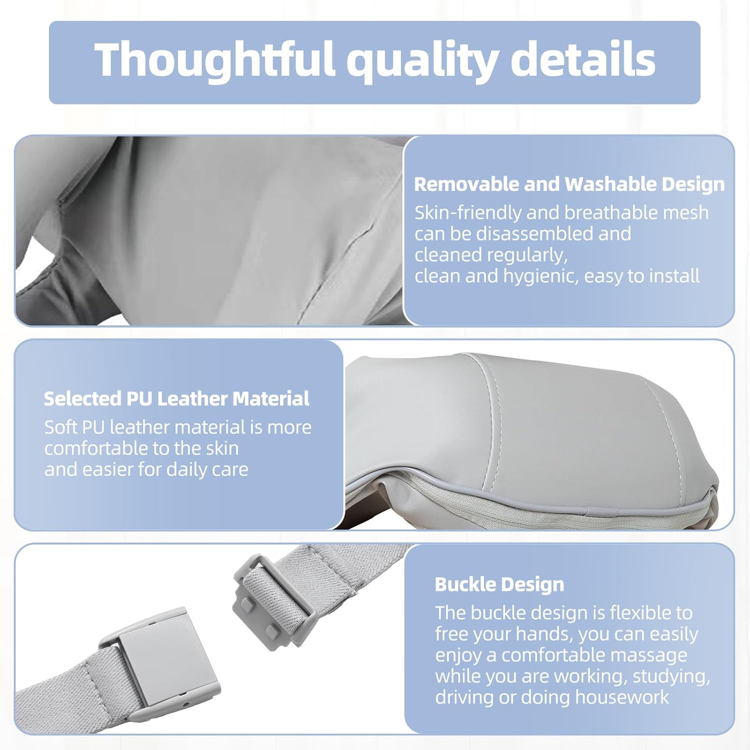 - Przenośna konstrukcja bez użycia rąk: przemyślana konstrukcja bez użycia rąk uwalnia ręce; niezależnie od tego, czy pracujesz, uczysz się, prowadzisz lub wykonujesz prace domowe, a nawet w podróży, możesz w pełni cieszyć się relaksującym masażem. Wyselekcjonowany materiał ze skóry PU i oddychających tkanin; miękki i przyjazny dla skóry; zdejmowany i zmywalny; łatwy do przenoszenia