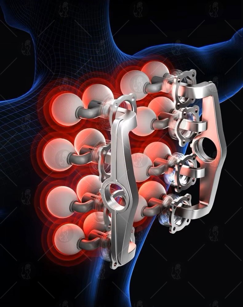 16 głowic masujących – idealne do masażu pleców, ud, pośladków, brzucha i innych partii ciała