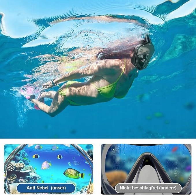 Maska wyposażona jest w rurkę zapewniającą swobodne oddychanie. Innowacyjna konstrukcja zapobiega parowaniu, a silikonowe uszczelki chronią przed wodą. Odkryj piękno mórz i oceanów w niespotykany dotąd sposób.