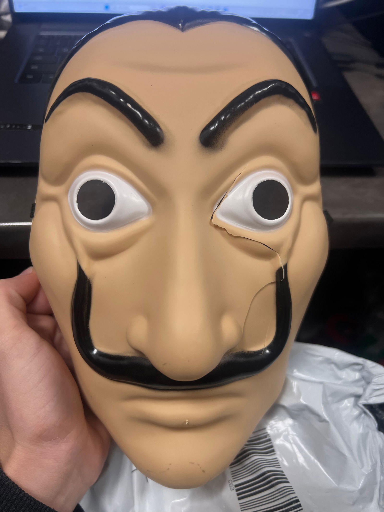UWAGA! PRODUKT UŻYWANY, USZKODZONY - PĘKNIĘCIE BIEGNĄCE OD OKA DO UST, MASKA W FOLIOWYM WORECZKU. KK