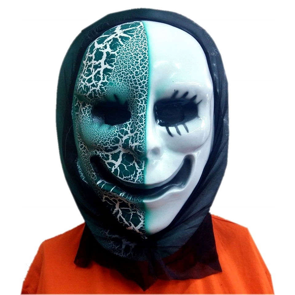 Plastikowa maska karnawałowa w dwóch wzorach: uśmiech i grymas. Dostępna w biało-czerwonej oraz biało-zielonej wersji kolorystycznej. Lekka i wygodna, mocowana na gumce. Doskonały wybór na imprezy tematyczne i bale karnawałowe.