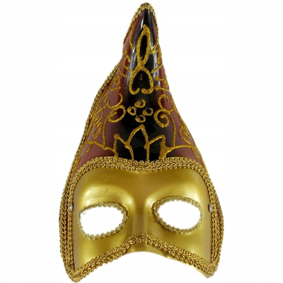 Metaliczna maska wenecka z brokatowym motywem to elegancki i efektowny dodatek na bal maskowy, karnawał czy tematyczne imprezy. Mocowana na gumce, lekka i wygodna. Dostępna w dwóch wariantach kolorystycznych: srebrnym oraz złoto-czerwonym. Brokatowe zdobienia dodają blasku i tajemniczego uroku. Zapakowana w woreczek ochronny.