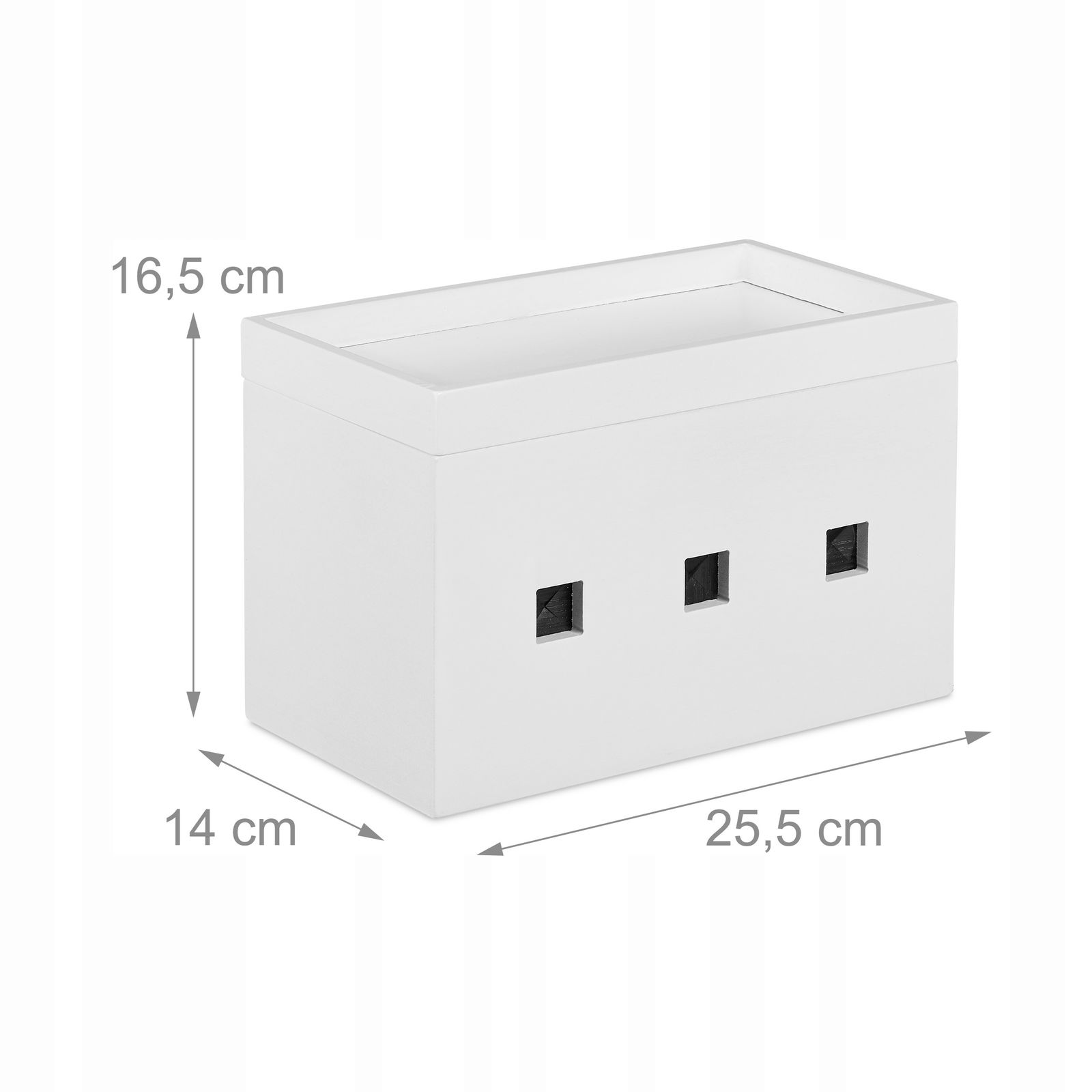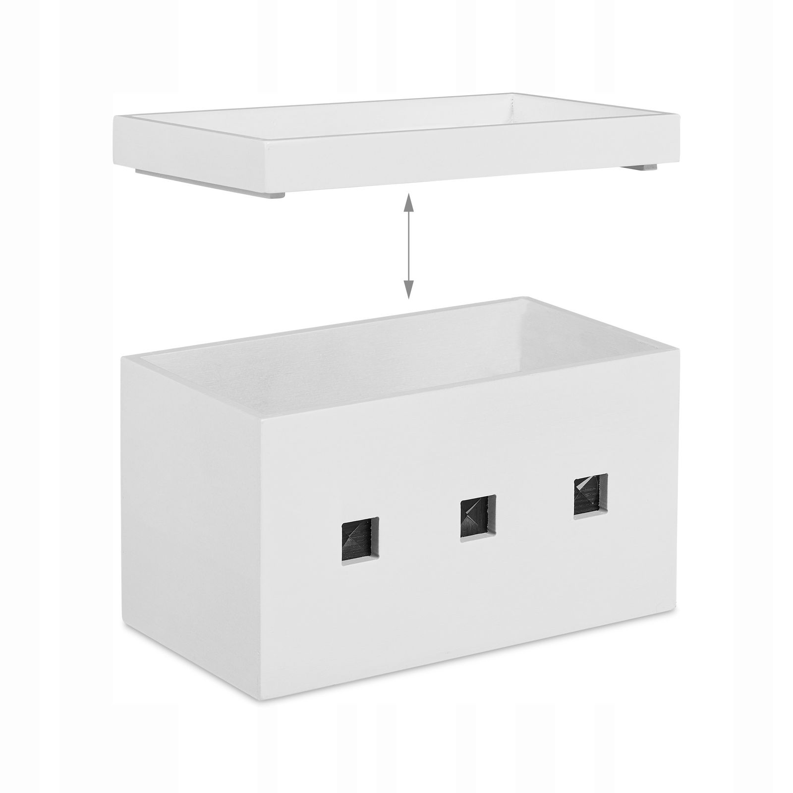 Nasz schowek na przewody to idealne rozwiązanie, które pomoże Ci w elegancki sposób ukryć przedłużacze aż do 24 cm długości. Pojemnik sprawdzi się także jako stacja dokująca do jednoczesnego ładowania 3 różnych urządzeń. Odłóż komórkę, smartfona lub tablet na górnej półeczce schowka na kable. Wysoki rand pokrywy i półeczki zapobiega spadaniu przedmiotów.