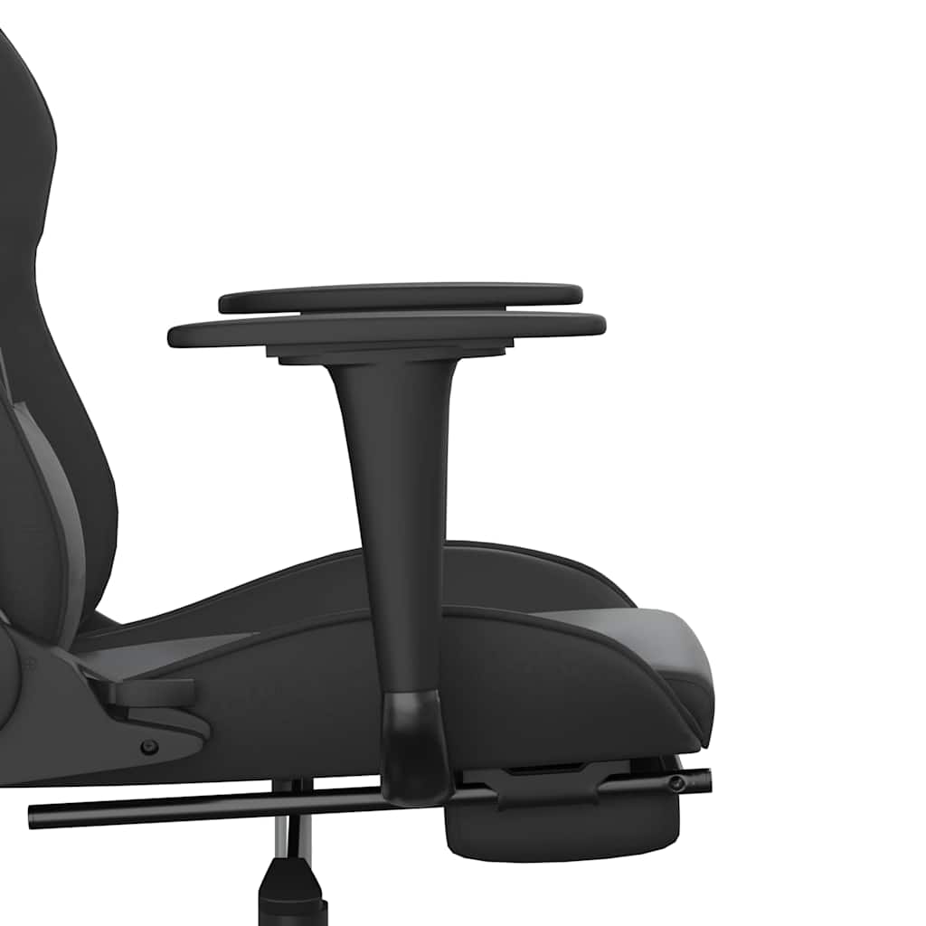 Masujący fotel gamingowy z podnóżkiem, czarny, sztuczna skóra