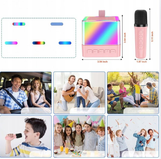 - Idealny prezent dla każdego: kolorowa maszyna karaoke w estetycznym opakowaniu stanowi doskonały pomysł na prezent dla dzieci, młodzieży oraz dorosłych, gwarantując zabawę i radość niezależnie od wieku.