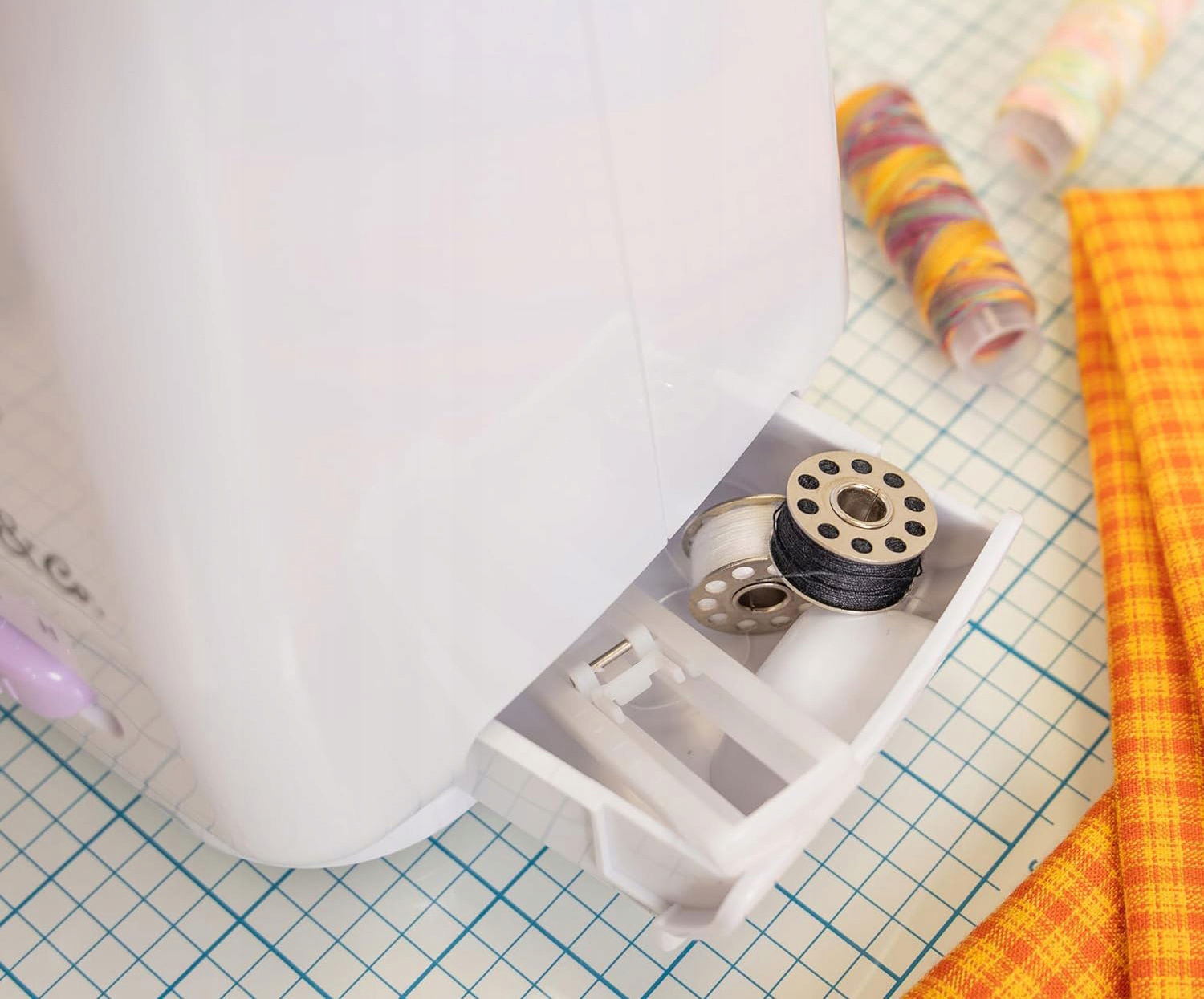 - Praktyczna szuflada do przechowywania akcesoriów – Wbudowana szuflada pozwala na wygodne przechowywanie nici, igieł i innych niezbędnych akcesoriów. Dzięki temu wszystkie niezbędne elementy będą zawsze pod ręką.