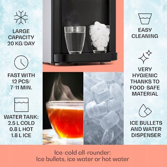 Maszyna Kostkarka do lodu Klarstein Aqueous DOZOWNIK ZIMNEJ I GORĄCEJ WODY