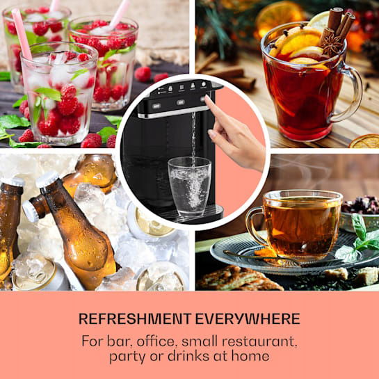 Klarstein Aqueous to multifunkcyjne urządzenie niezbędne w każdej kuchni i na imprezie. Urządzenie może jednocześnie produkować kostki lodu, dozować zimną i gorącą wodę. To wszystko w jednym czasie!!!