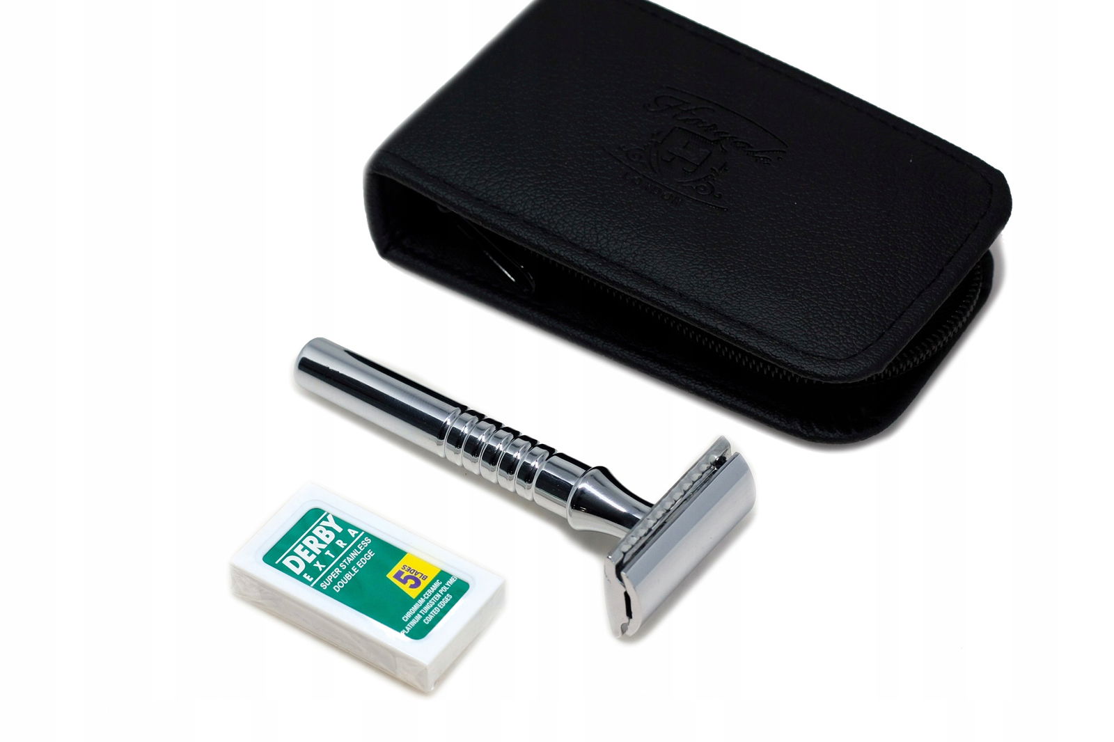 Klasyczna maszynka do golenia w kształcie litery T, z zamkniętym grzebieniem. Ergonomiczny, doskonale dopasowany kształt uchwytu maszynki do golenia został zaprojektowany tak, aby perfekcyjnie zbalansować kontakt między dłonią a skórą twarzy. Uchwyt ze stali nierdzewnej z antypoślizgowym uchwytem, całość maszynki do golenia ma polerowane lustrzane wykończenie.