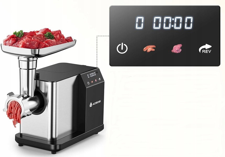- Mocny silnik o mocy 3000 W ułatwia mielenie do 1,8 kg mięsa na minutę.