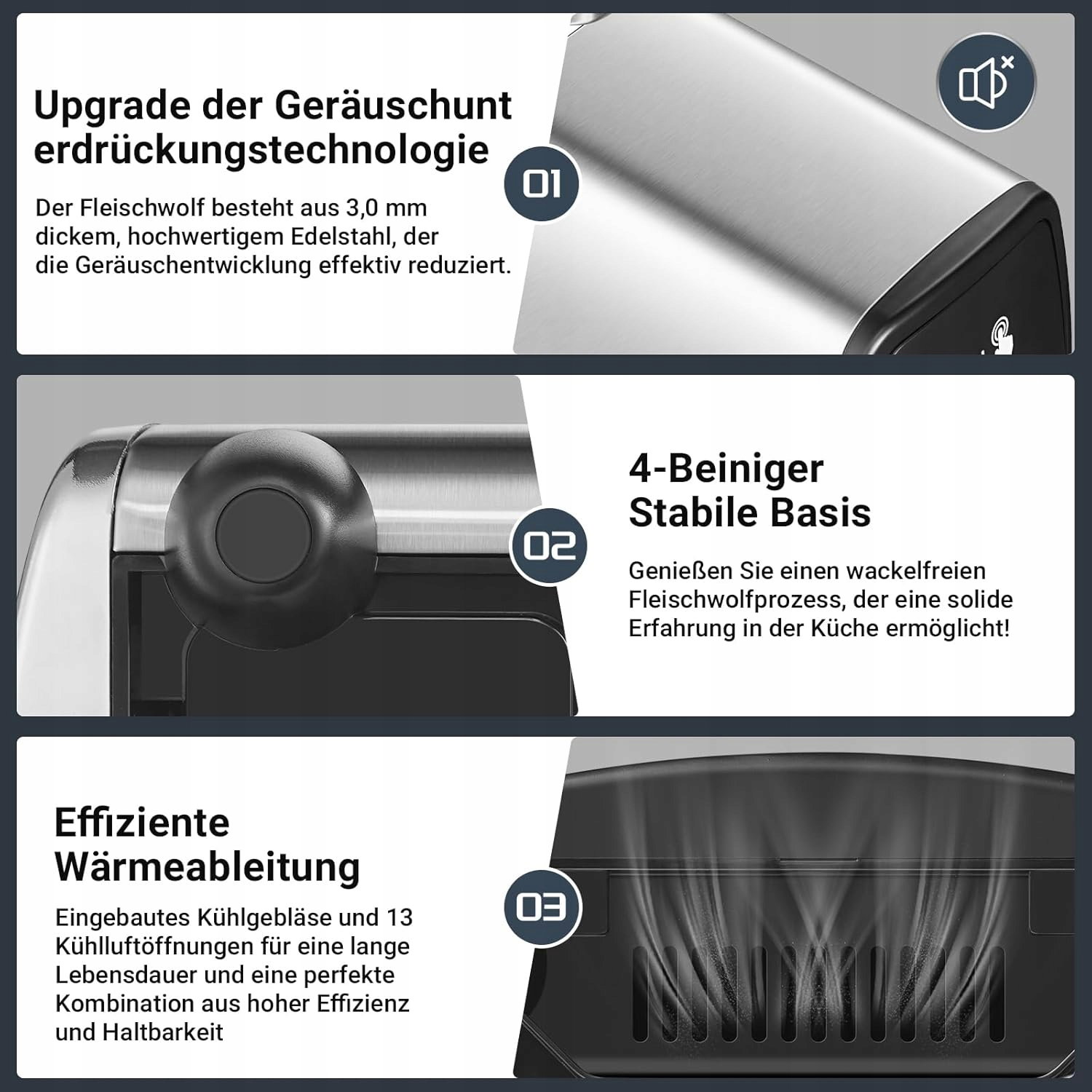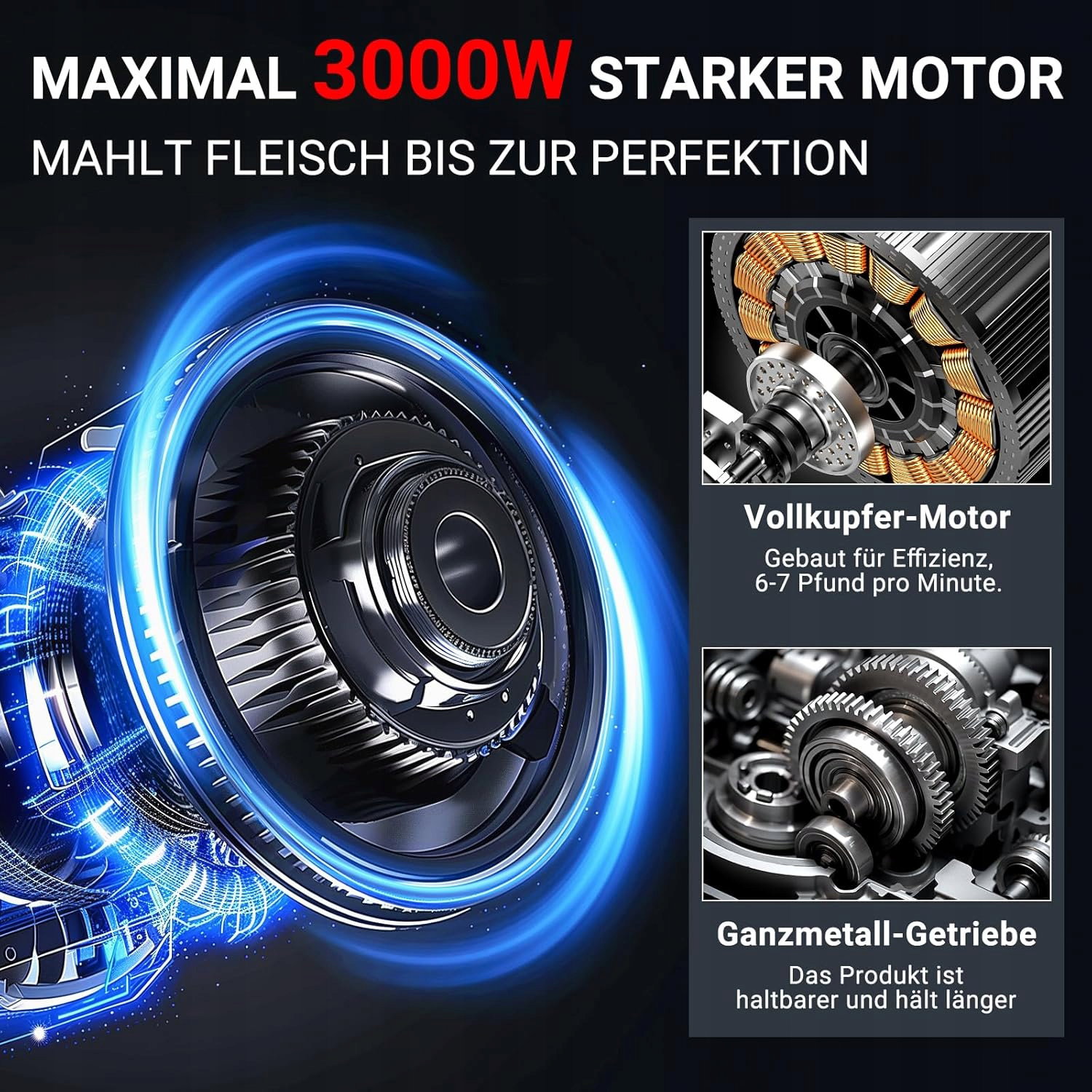 ✅ Mocny, wytrzymały silnik idealny do przetwarzania dużych ilości mięsa w krótkim czasie