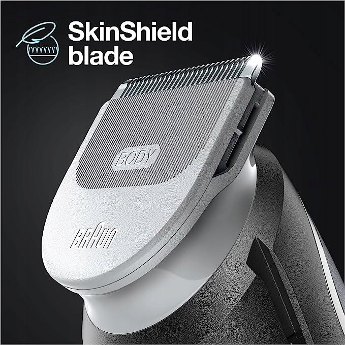 Ostrzejsza. Szybciej. Bardziej wydajna: Ta męska maszynka do strzyżenia ciała ma szerszy obszar cięcia — łapie i obcinając więcej włosów przy każdym pociągnięciu (w porównaniu z poprzednimi trymerami Braun)