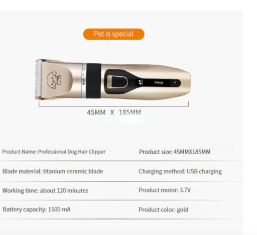 - Wydajna bateria i szybkie ładowanie: Wbudowany akumulator ładuje się w zaledwie 4–5 godzin i zapewnia do 2–3 godzin ciągłej pracy, co pozwala na dokładne strzyżenie nawet kilku zwierzaków bez potrzeby doładowywania.