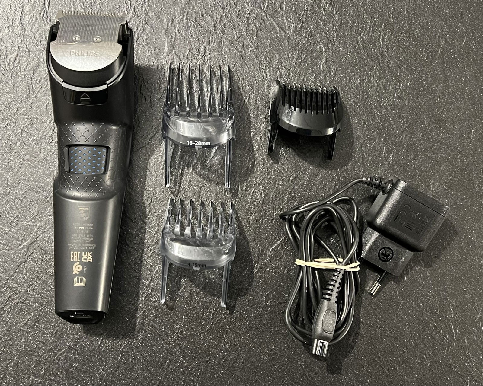 Zawartość opakowania: maszynka do strzyżenia włosów, 2 nasadki grzebieniowe, torba podróżna/do przechowywania, szczoteczka do czyszczenia i kabel ładujący.