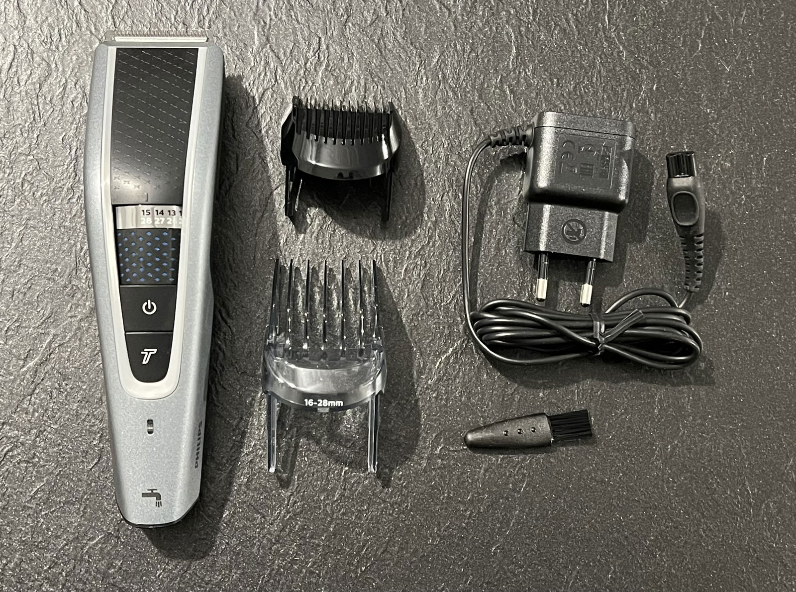 • Zawartość opakowania: maszynka do strzyżenia włosów, 2 nasadki grzebieniowe, torba podróżna/do przechowywania, szczoteczka do czyszczenia i kabel ładujący.