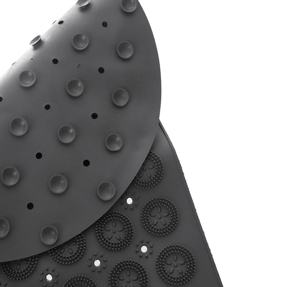 WYTRZYMAŁA - Wykonana z wysokiej jakości tworzywa w grafitowym kolorze, które jest odporne na wilgoć i wodę. Mata posiada wypustki masujące, dzięki czemu stopy będą delikatnie masowane podczas korzystania z maty. Grafitowy kolor maty sprawia że wkomponuje się w wystrój każdej łazienki.