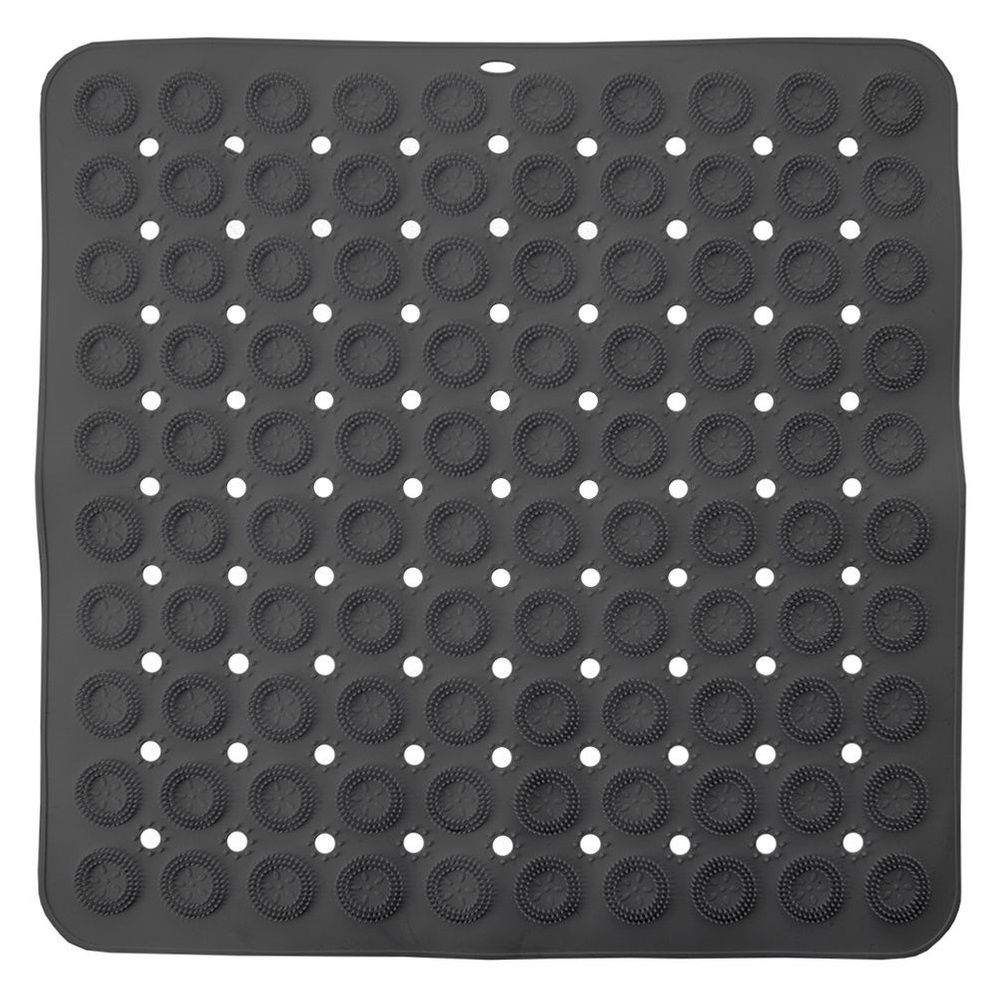 ANTYPOŚLIZGOWA - Łazienkowa mata antypoślizgowa z wypustkami masującymi. Mata ma kwadratowy kształt o wymiarach 53 x 53 cm. Sprawdzi się pod prysznicem, w brodziku lub wannie. Mocno przylega za pomocą przyssawek.