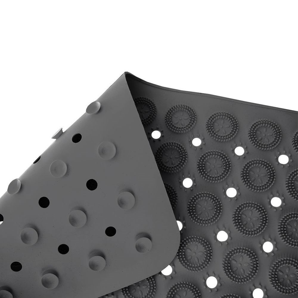WYTRZYMAŁA - Wykonana z wysokiej jakości tworzywa w grafitowym kolorze, które jest odporne na wilgoć i wodę. Mata posiada wypustki masujące, dzięki czemu stopy będą delikatnie masowane podczas korzystania z maty. Grafitowy kolor maty sprawia że wkomponuje się w wystrój każdej łazienki.