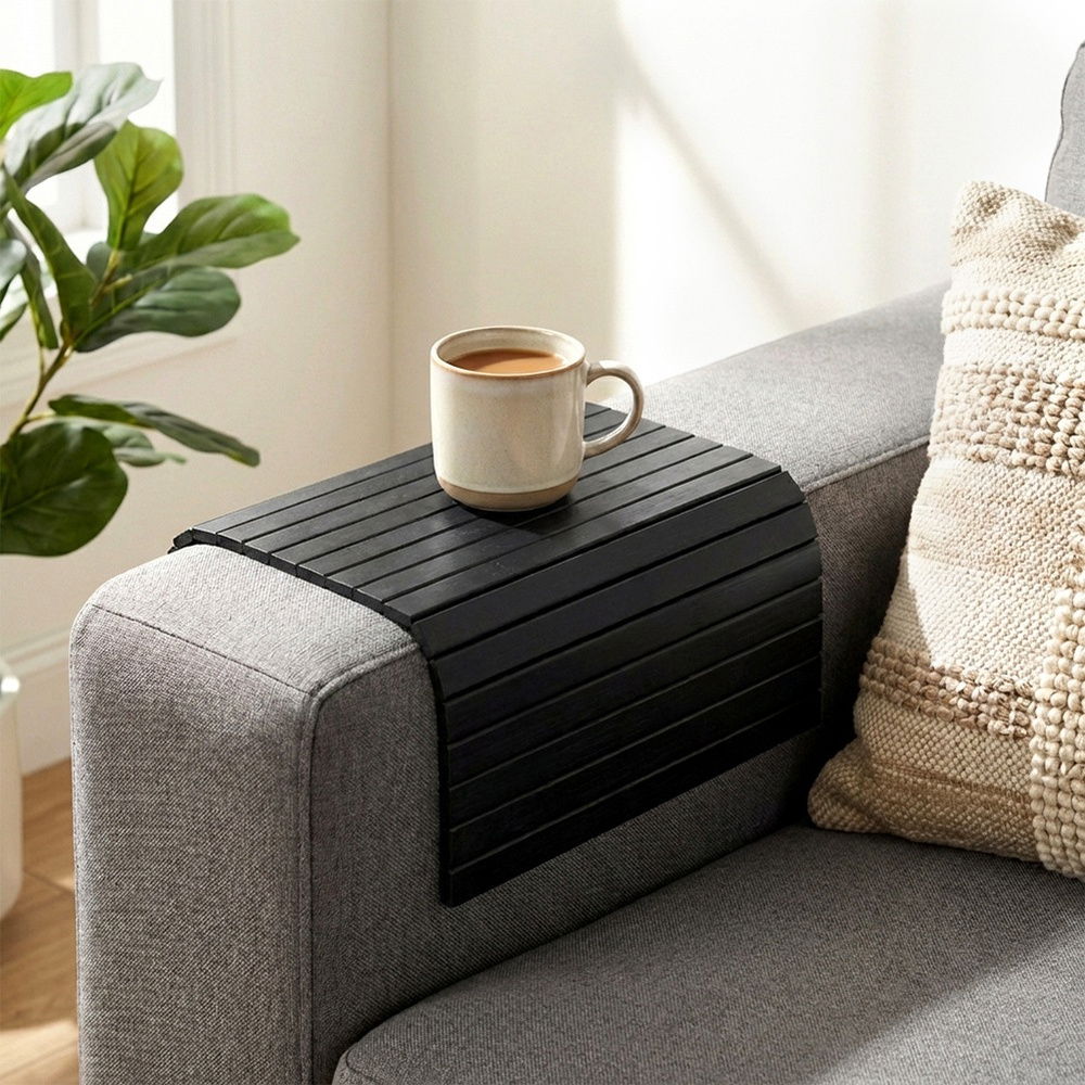 Możliwość umieszczenia na boku kanapy lub fotela - Podkładka może pełnić funkcję praktycznej półki na kubek, filiżankę, książkę lub drobne przedmioty po ułożeniu jej na oparciu kanapy lub fotela, chroniąc tapicerkę przed zabrudzeniem.