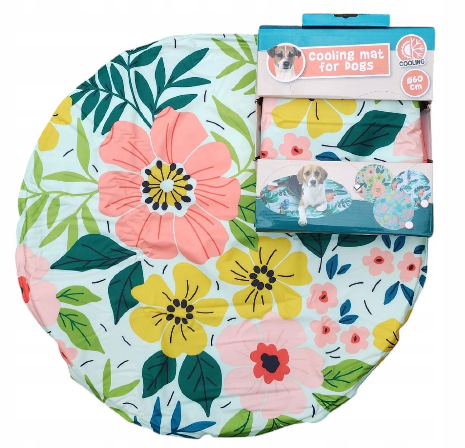 MATA CHŁODZĄCA DLA ZWIERZĄT PSA KOTA PUPILA 60 cm OKRĄGŁA KOLOROWE KWIATY
