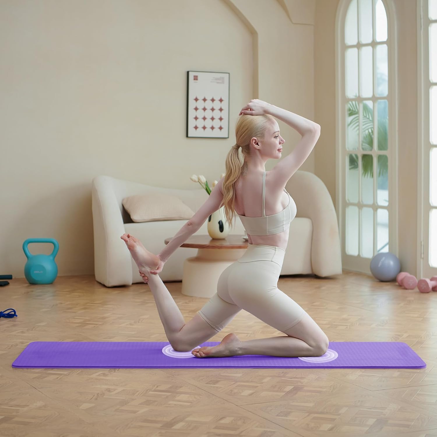 Wszechstronna i przenośna: Nasza mata do jogi ma średnią wagę i można ją łatwo zwinąć i zabrać wszędzie zarówno dla mężczyzn, jak i kobiet. Mata do jogi może być używana podczas ćwiczeń, pikników, biwakowania, podróży i wielu innych.