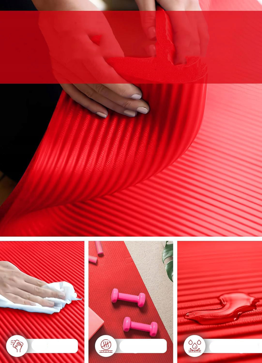 MATA DO ĆWICZEŃ JOGI TRENINGOWA FITNESS GRUBA + POKROWIEC CZERWONA 180x60