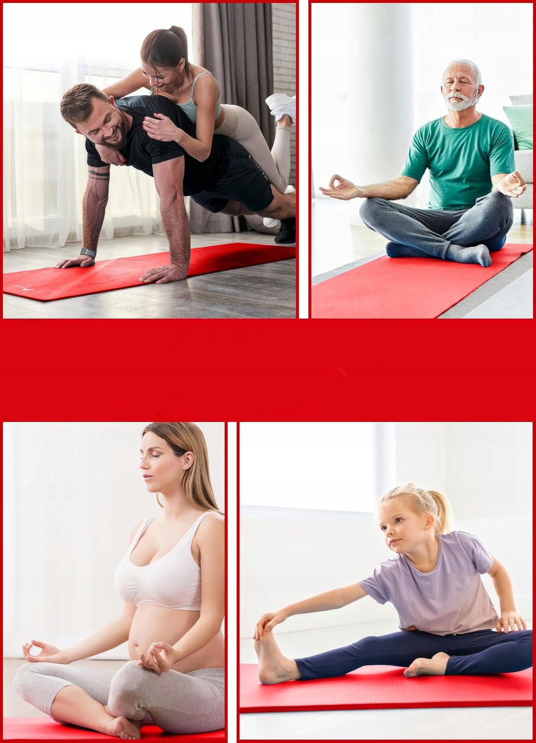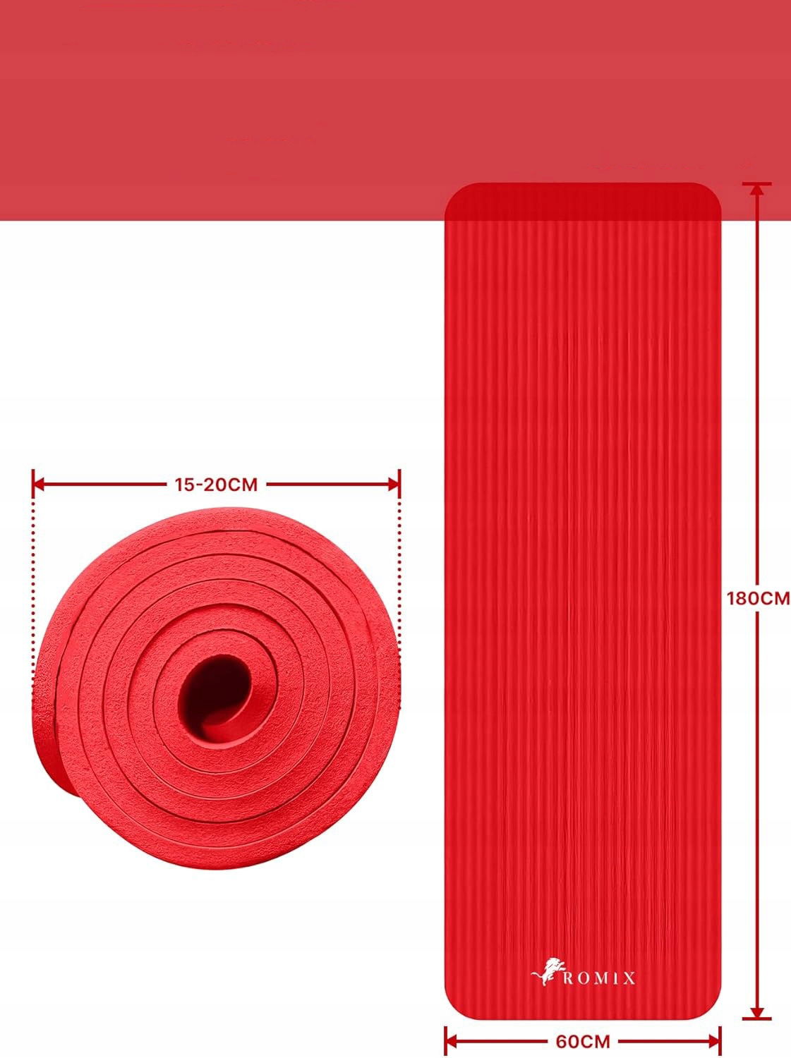 ✅ MATA DO ĆWICZEŃ JOGI GIMNASTYCZNA TRENINGOWA FITNESS UCHWYT CZERWONA 180x60x1,5 cm