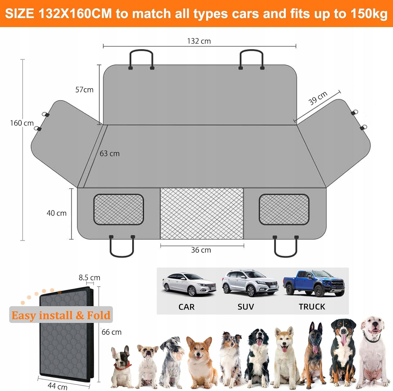 • Zalecane zastosowania produktu: Ochrona samochodu, wygoda psa i przechowywanie niezbędnych rzeczy dla zwierząt