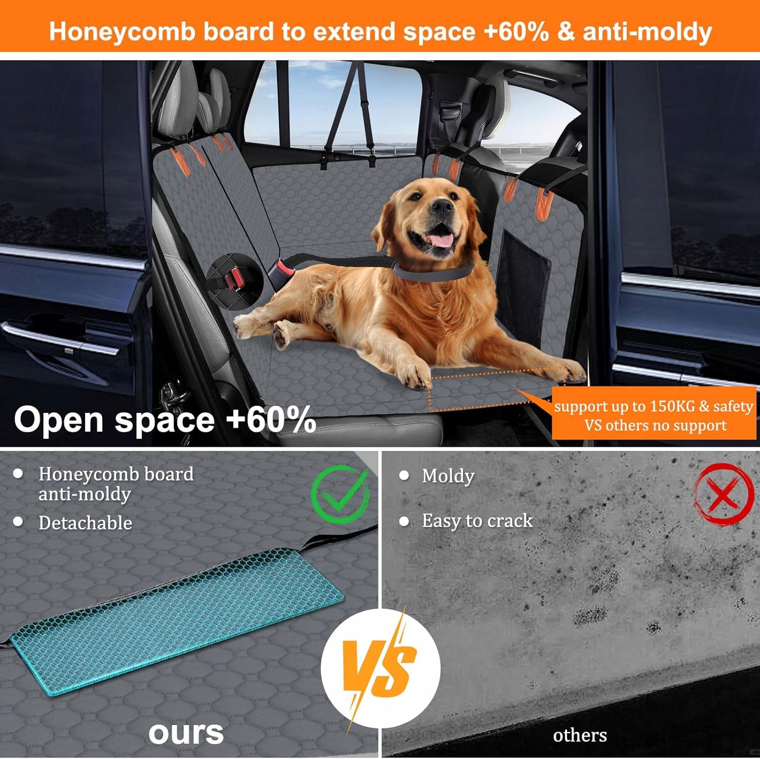 • WIĘCEJ PRZESTRZENI: Przedłużenie siedziska dla psa ma pogrubioną płytę podporową na dole, która zwiększa przestrzeń i stabilność o 100%. Nie tylko wydłuża przestrzeń tylnego siedzenia samochodu i zapewnia Twojemu psu dwukrotnie więcej miejsca do poruszania się i leżenia, ale także zapobiega składaniu się siedziska, zwierzę podróżuje wygodniej, rozciąga się i swobodnie obraca.