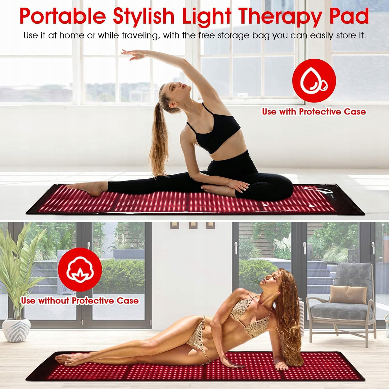 - Duży rozmiar i ochrona etui: 60 cm szerszy rozmiar dla większości ludzi, a z pokrowcem ochronnym do ochrony przed zabrudzeniem i kurzem dla lepszej codziennej konserwacji. W zakres dostawy wchodzi również duża torba do przechowywania i okulary ochronne, aby wygodnie przechowywać pad i chronić oczy. Podczas korzystania z terapii światłem należy nosić okulary ochronne.
