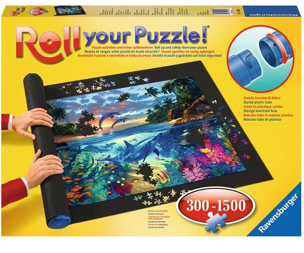 Roll Your Puzzle to praktyczna mata z wałkiem i gumkami, idealna do układania oraz przechowywania puzzli od 300 do nawet 1500 elementów. Wystarczy rozwinąć matę z antypoślizgowego filcu, ułożyć fragmenty, a po skończeniu zwinąć całość i zabezpieczyć taśmami – bez bałaganu i utraty elementów. Sprawdza się podczas przerw, transportu lub gdy kawałek układanki musi zostać odsunięty.