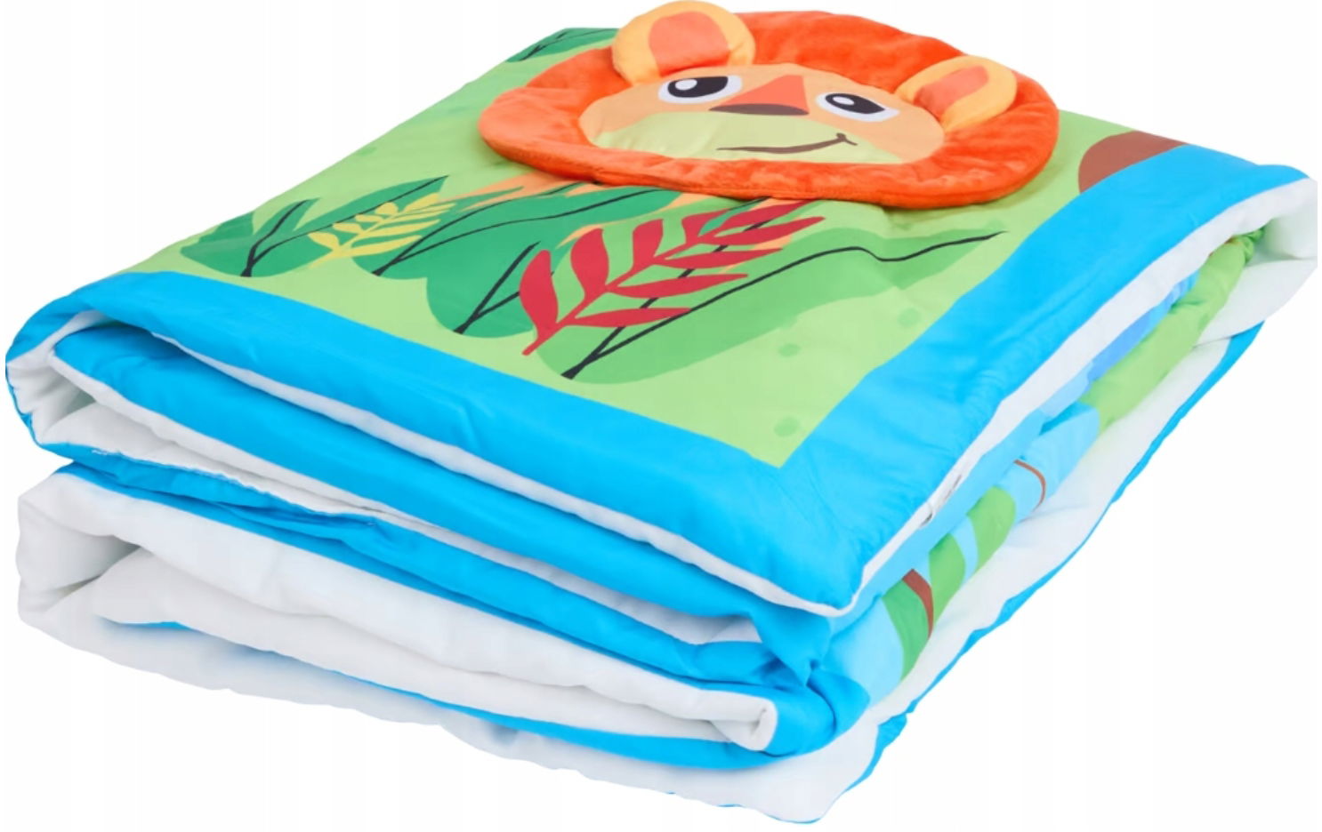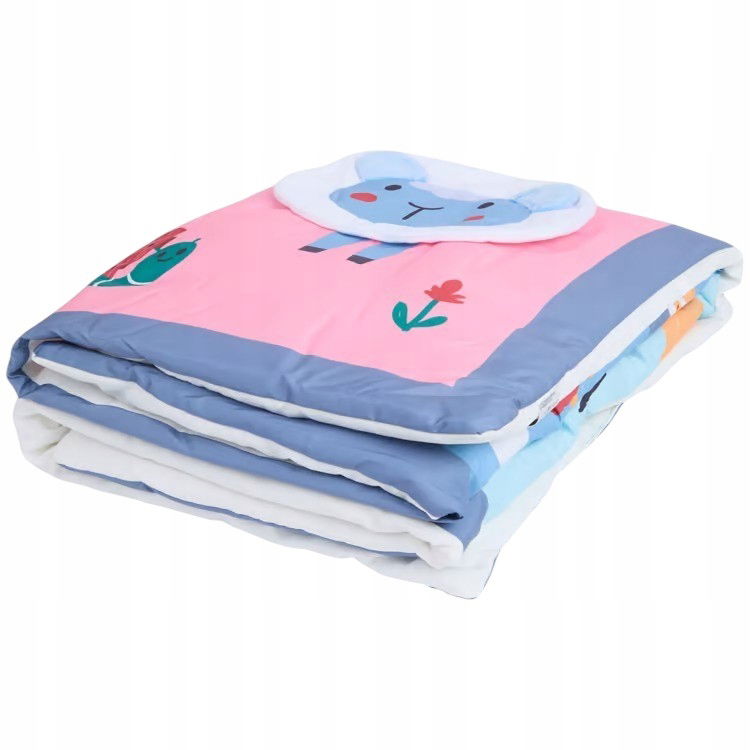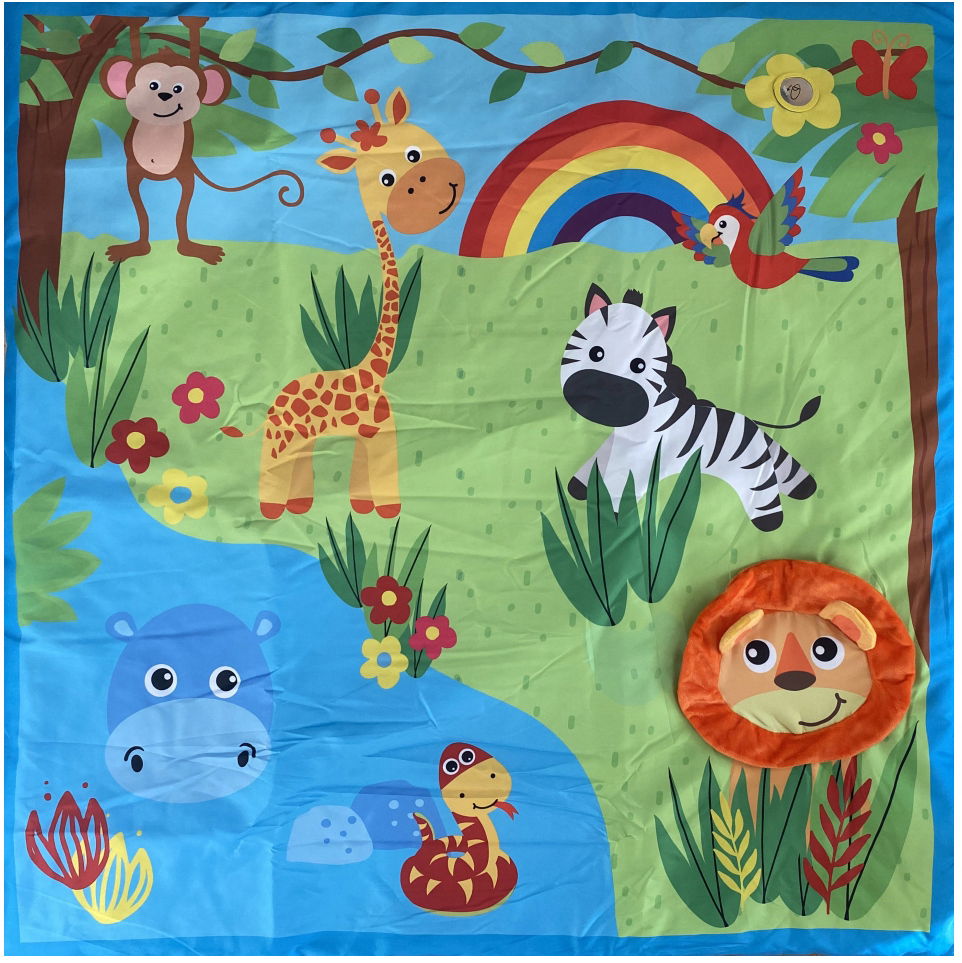 Kolorowe wzory, zwierzątka i inne elementy związane tematycznie z naturą przyciągają uwagę dziecka.