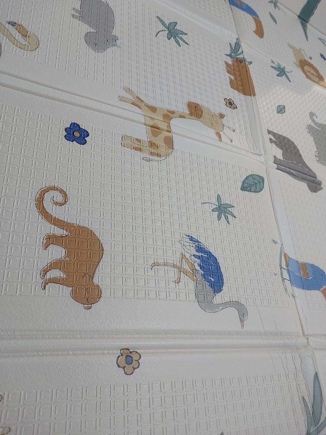 Dwustronny design z motywem Safari oferuje różnorodne, kolorowe wzory, które stymulują zmysły dziecka i zachęcają do eksploracji. Miękki, bezpieczny materiał zapewnia komfort podczas zabawy, raczkowania lub odpoczynku, jednocześnie chroniąc przed chłodem podłogi.