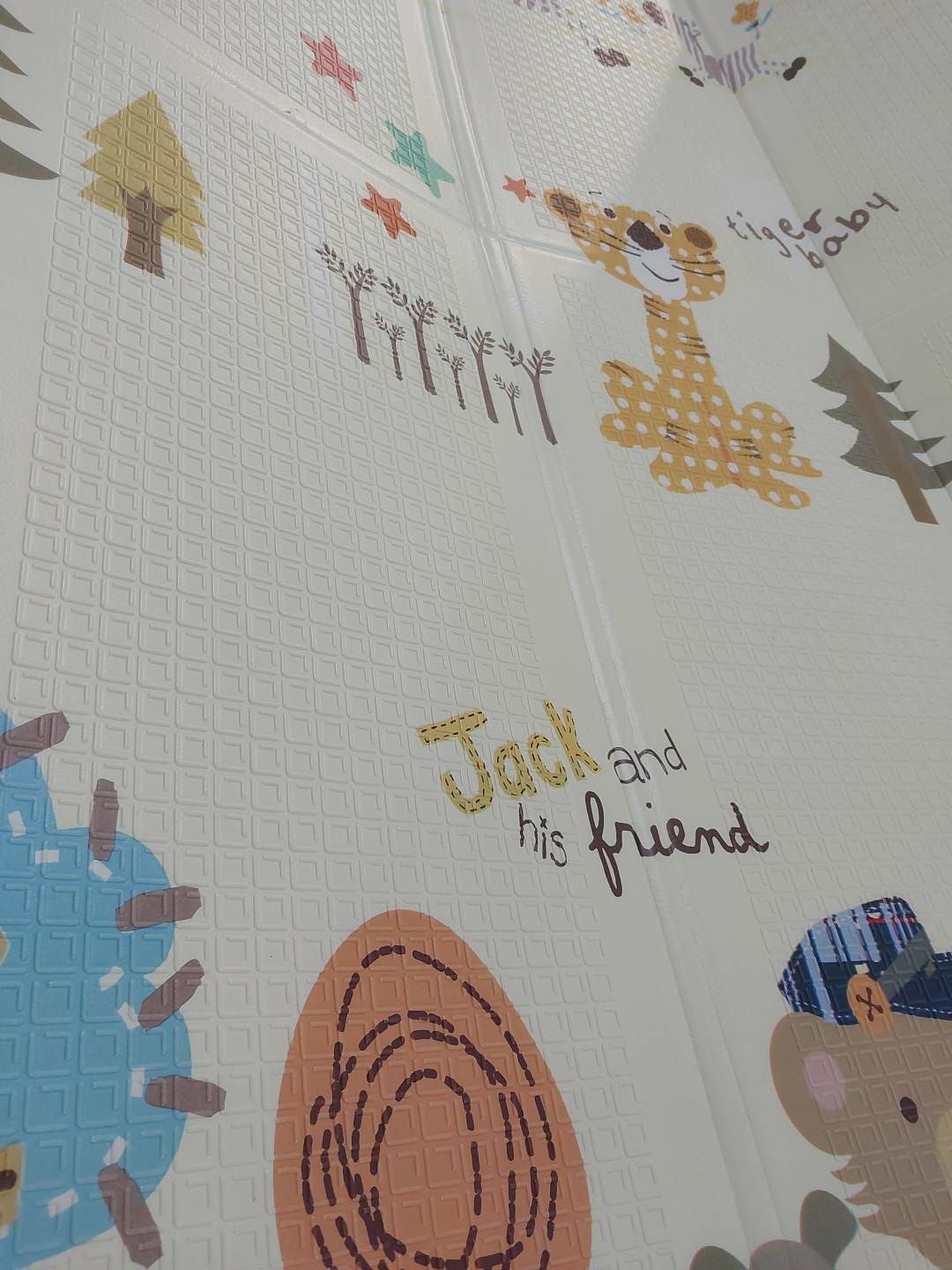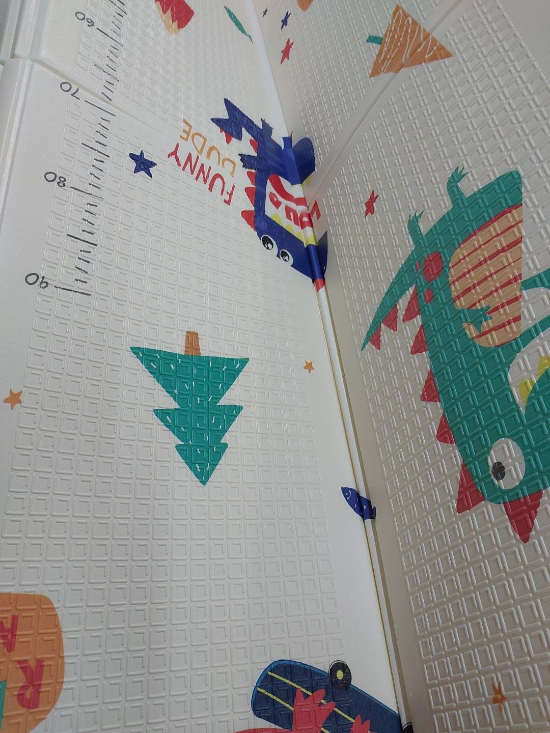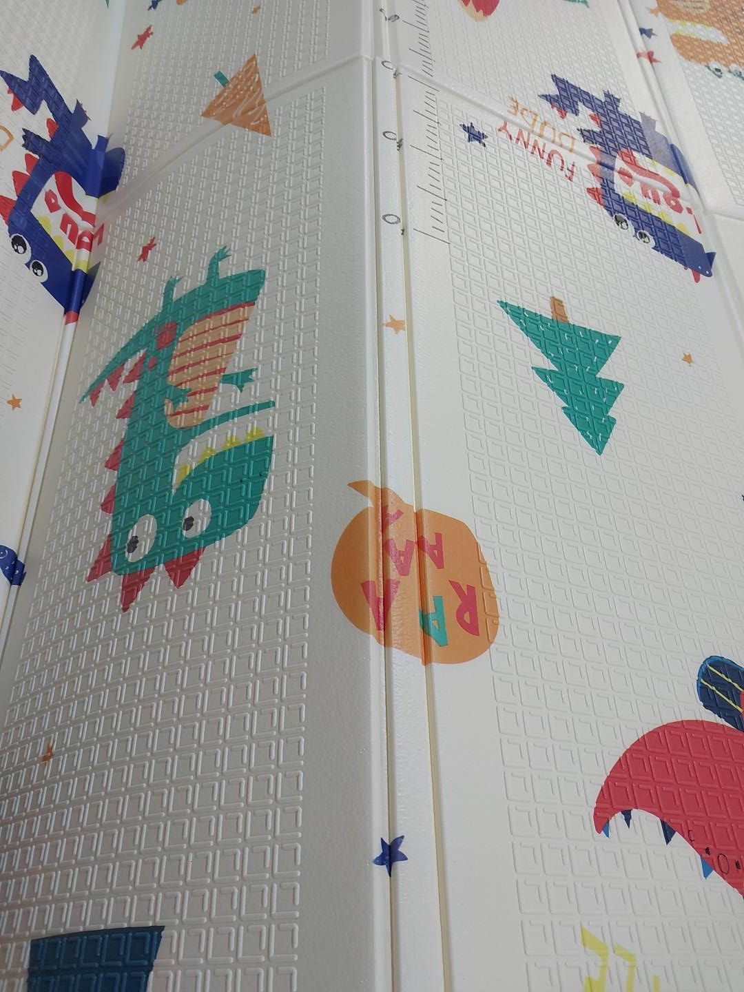 Dwustronny wzór maty inspirowany jest rozwijaniem zdolności poznawczych dziecka. Dzięki możliwości składania, dziecko może swobodnie pełzać po podłodze. Mata jest łatwa do przechowywania i noszenia - ma grubość 1 centymetra oraz pięćwarstwowy składany design, dzięki czemu zapewnia szybkie przechowywanie i transport.