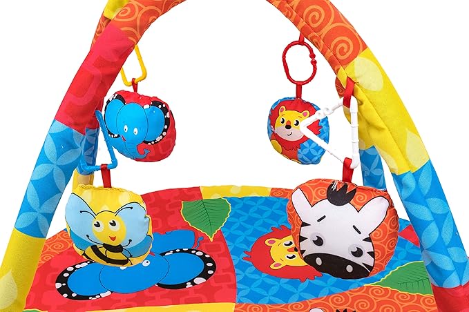 Mata do zabawy dla dzieci z motywami zwierzęcymi jest idealna do zabawy dla Twojego malucha. Rozwój pierwszych ruchów u noworodka następuje już w pierwszych miesiącach życia. Mata dla dziecka pomaga dziecku uczyć się wszystkiego, co go otacza. Zabawki zachęcają go do poruszania się i rozwijania motoryki, a mata chroni go przed zimnymi lub mokrymi powierzchniami.