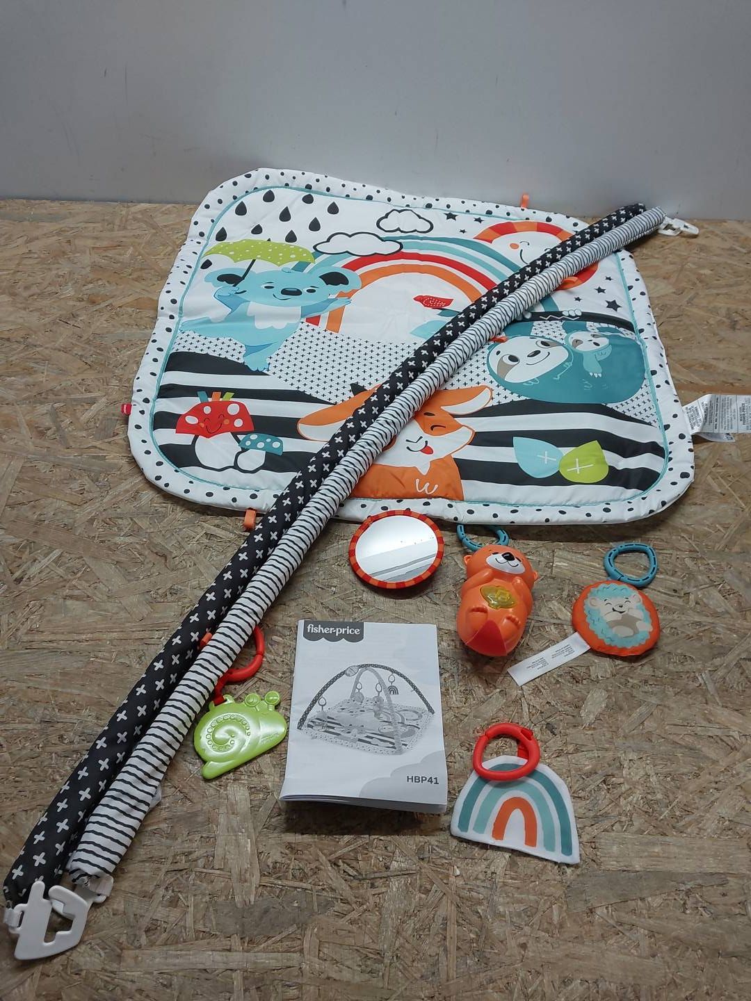 - Dwustronna szeleszcząca tęcza – stymuluje dotyk i słuch.