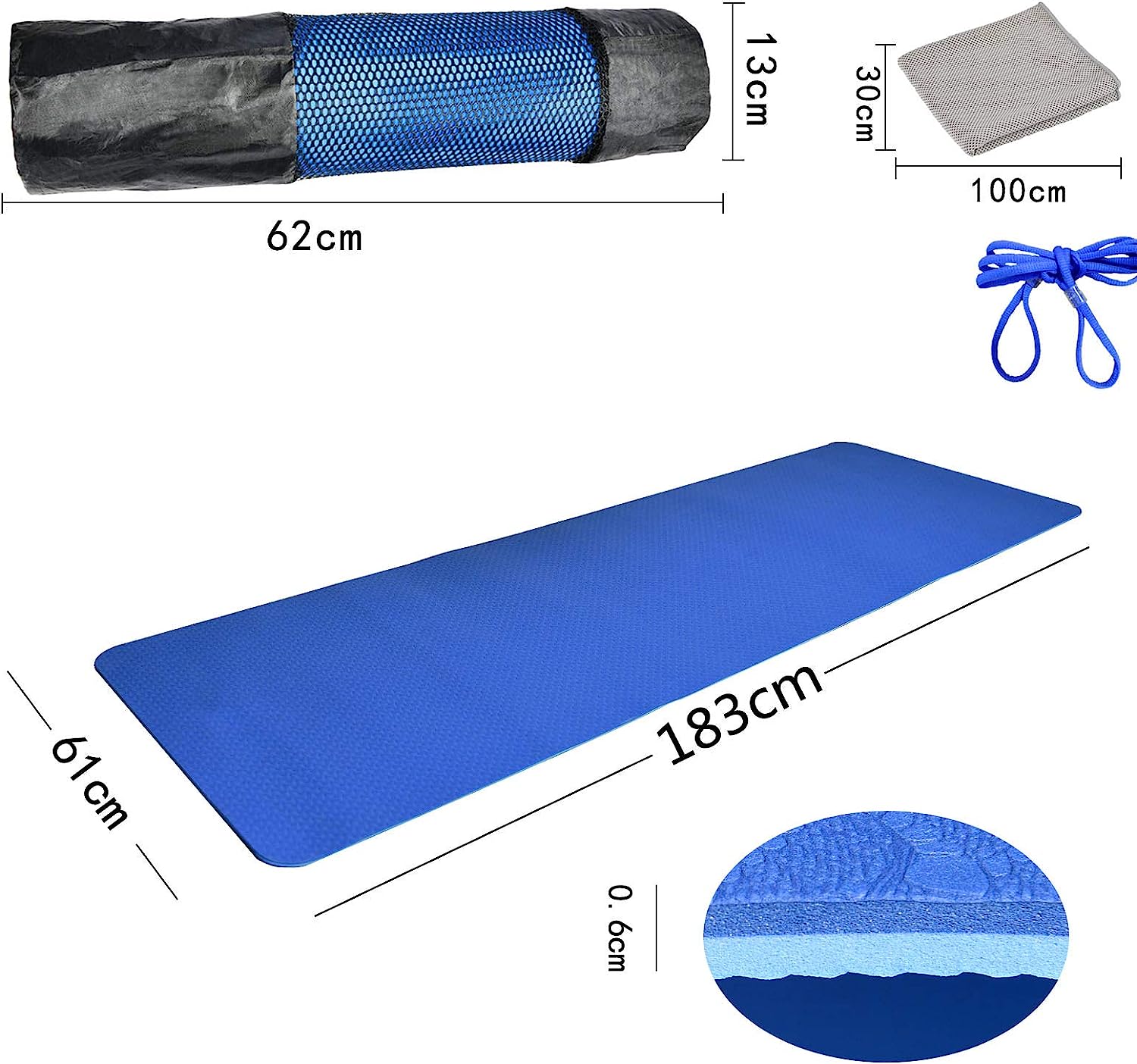 Doskonała wydajność – ta mata do jogi nadaje się zarówno do użytku w pomieszczeniach, jak i na zewnątrz. Można go szybko rozłożyć, a krawędzie nie kręcą się. Wymiary 183 x 61 x 0,6 cm sprawiają, że nadaje się również do wielu rodzajów ćwiczeń, takich jak joga, pilates i inne sporty fitness.