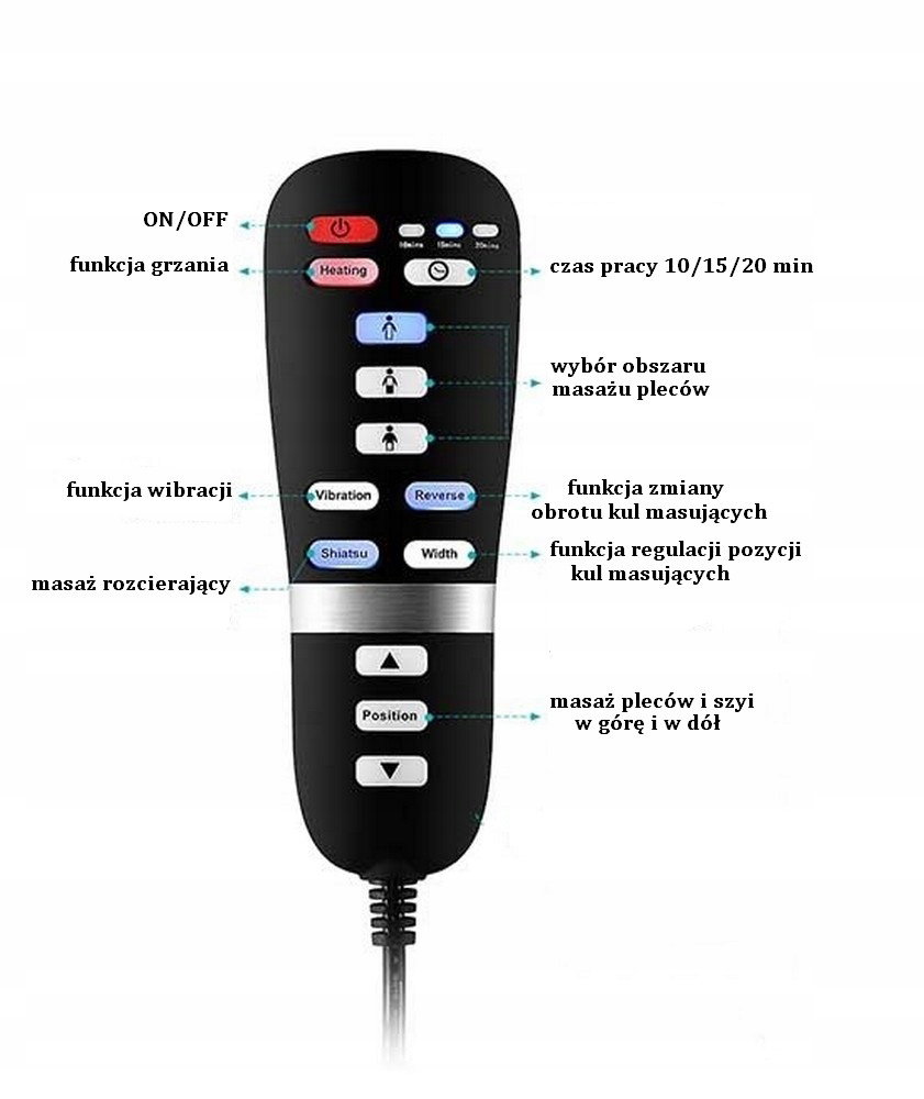 ⭐- funkcja Shiatsu - funkcja shiatsu obrotowe kule + funkcja rolowanie ( głowice nie kręcą się , ale przesuwają w linii góra dół )