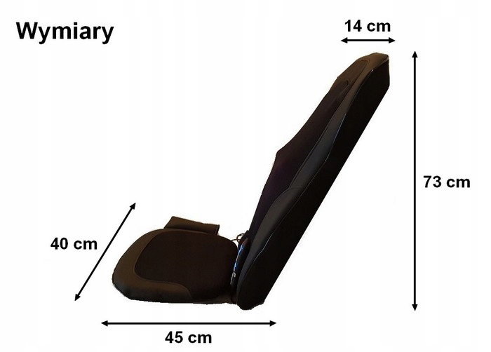 - Mata masująca ma wymiary 73 cm na 40 cm, zapewniając odpowiednią przestrzeń do komfortowego użytkowania.