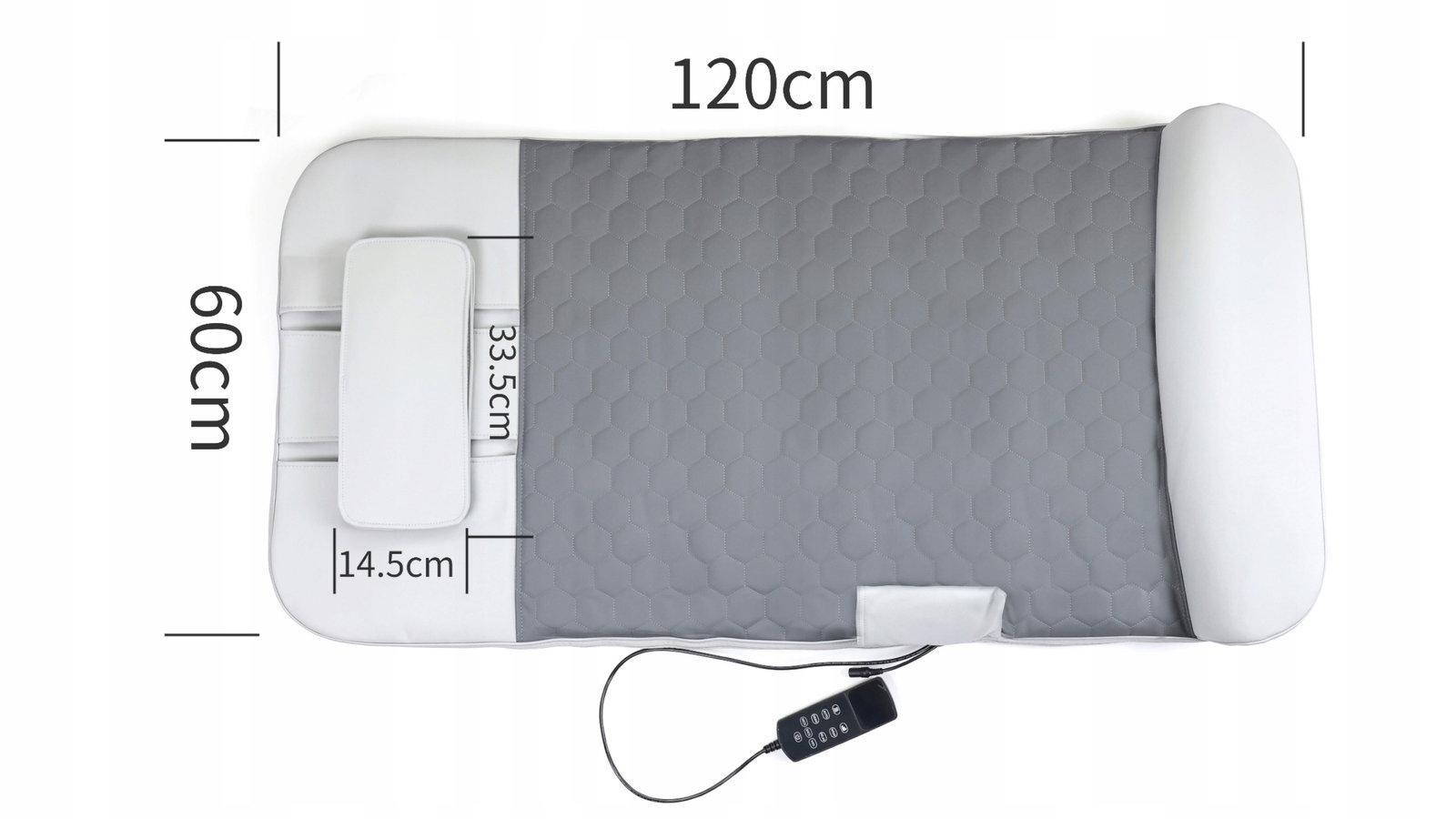- Funkcja grzania: Nasza mata posiada dodatkowo ogrzewanie które wspomaga relaksację i złagodzenie napięć mięśniowych. Ta funkcja jest szczególnie przydatna podczas masażu w chłodniejszych warunkach klimatycznych lub gdy potrzebne jest dodatkowe rozluźnienie mięśni.